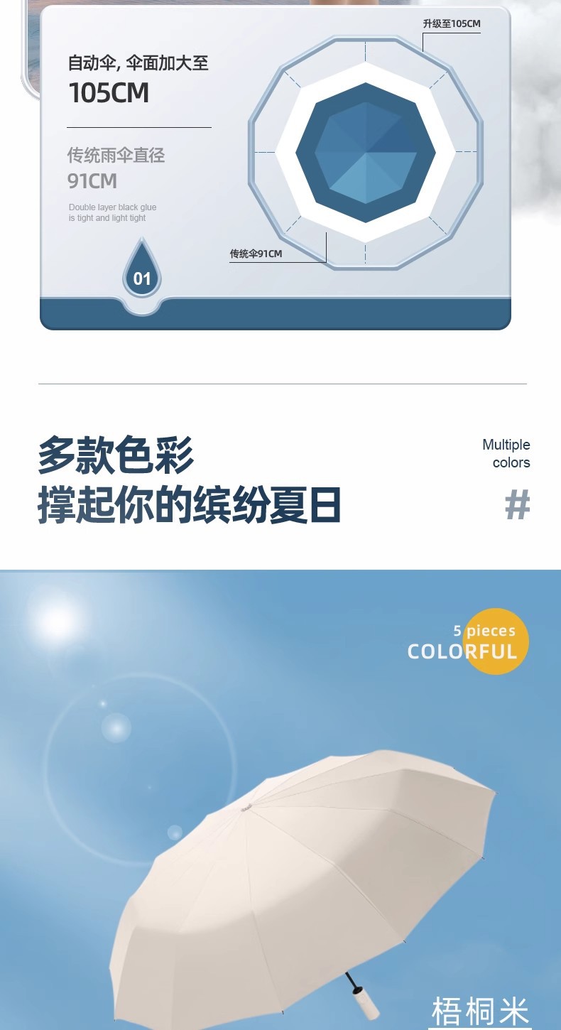 12본 우산 접이식 완전 자동 여성용 대형 비 또는 빛 접이식 비즈니스 자외선 차단제 태양 우산