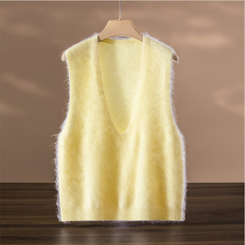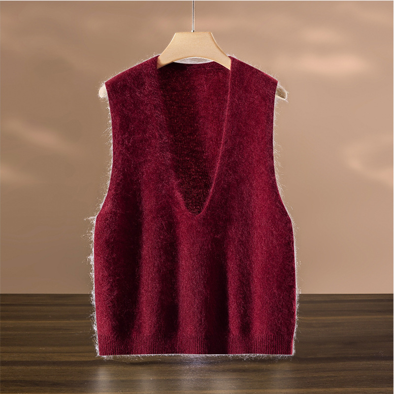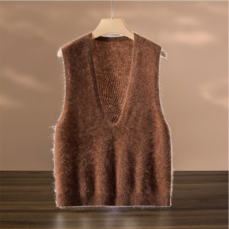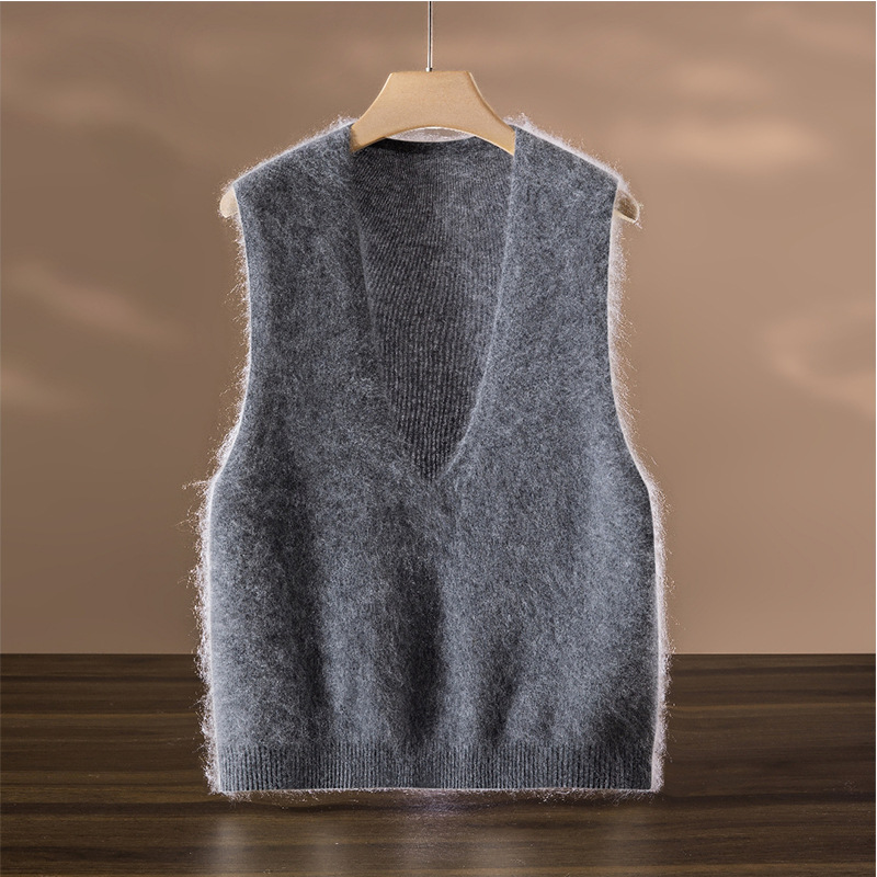 [다양한 색상 선택 가능] 캐시미어 울 기모 딥 브이넥 풀오버 조끼 여성 루즈 아우터 레이어드 스웨터