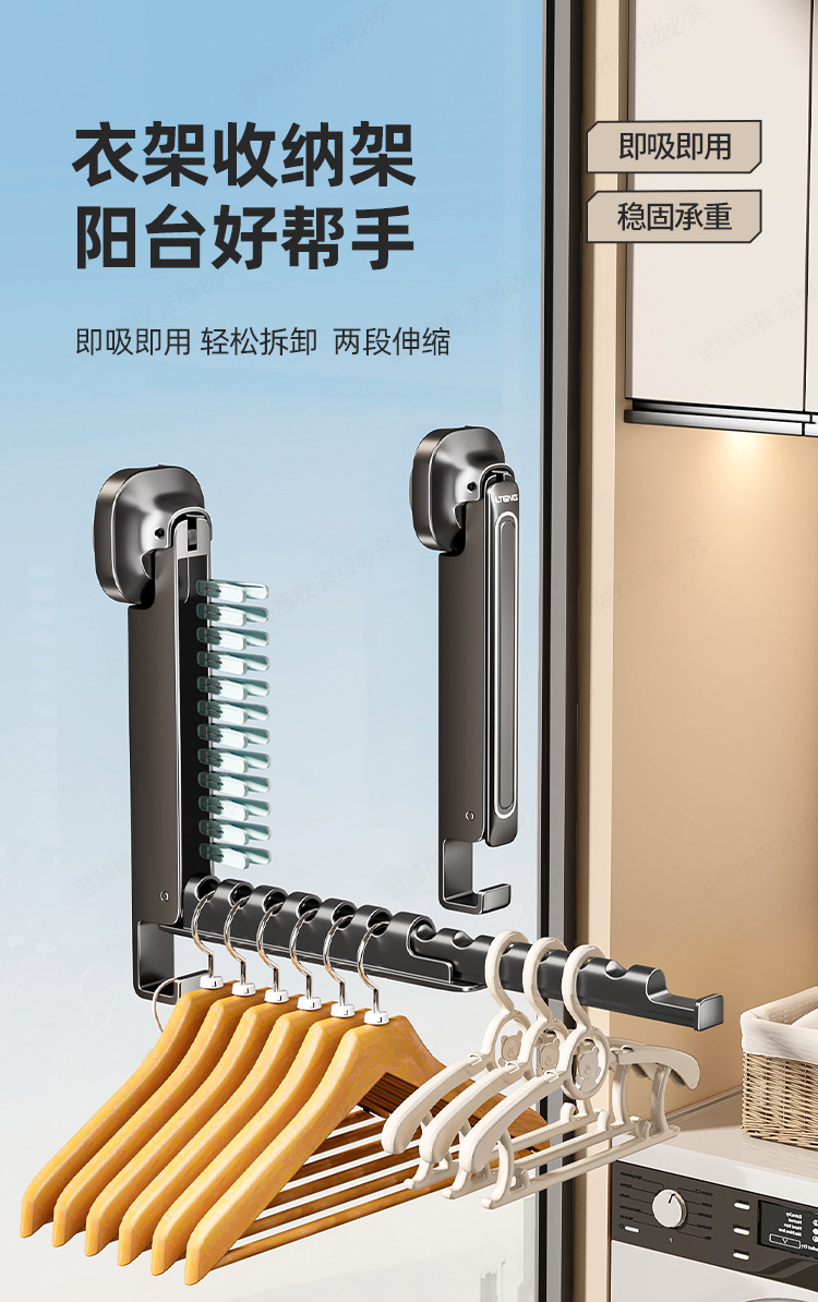 구멍을 뚫을 필요 없는 흡입컵 보이지 않는 접이식 건조대, 발코니 다기능 접이식 건조대, 실내 옷 건조용품