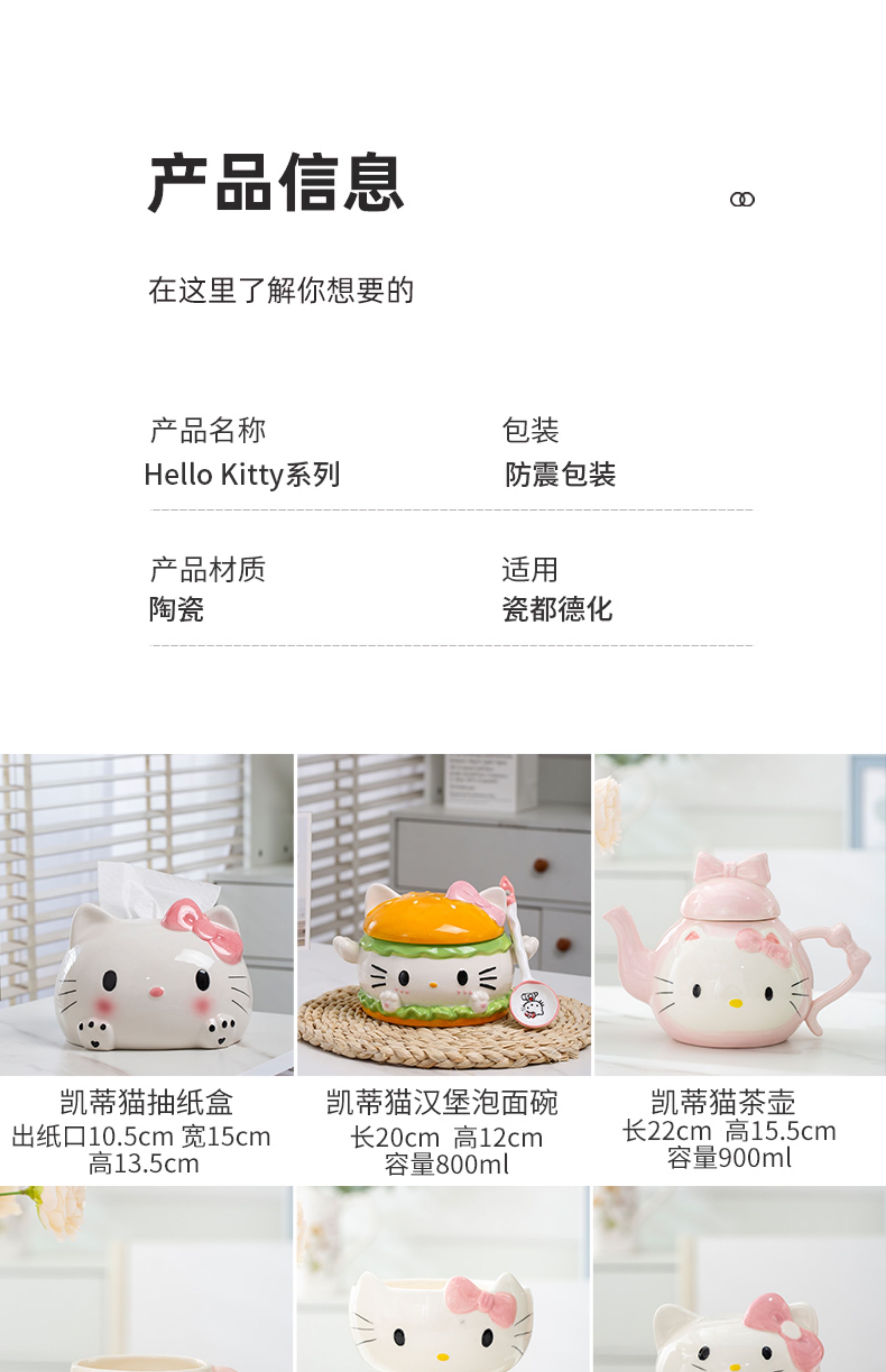 귀여운 헬로키티 시리즈 세라믹 장식품, 창의적인 가정용 소녀 식기, 기념품 그릇스토어 가기