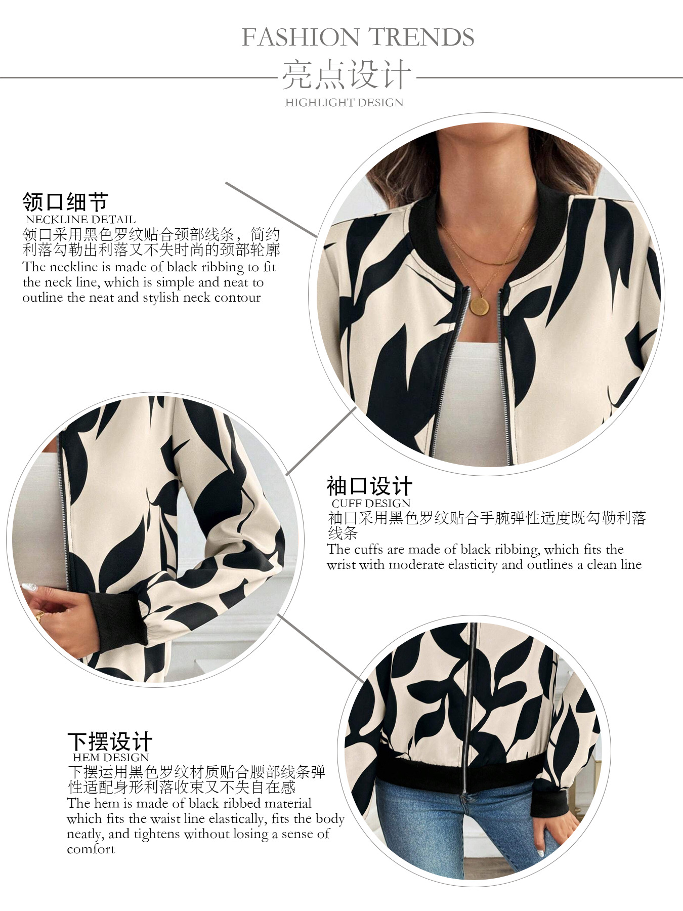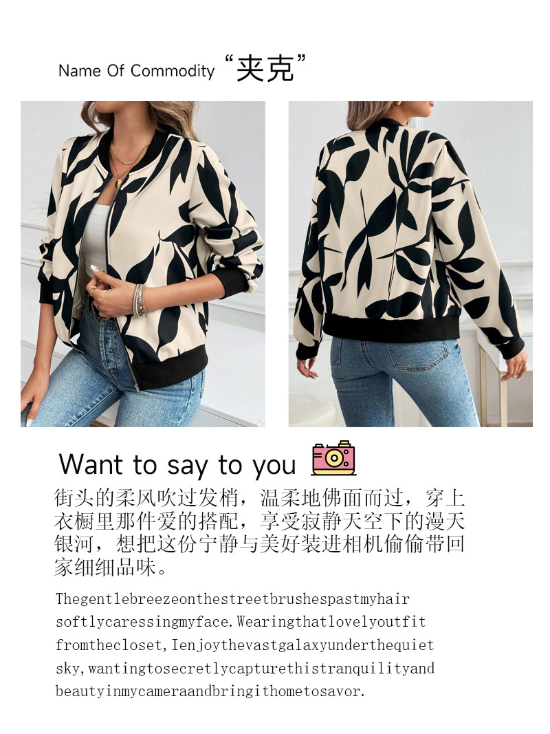 유럽과 미국의 국경 간 Amazon 2025 가을 겨울 새로운 스타일 프린트 지퍼 재킷 슬리밍 기질 통근 캐주얼 재킷 여성용스토어 가기