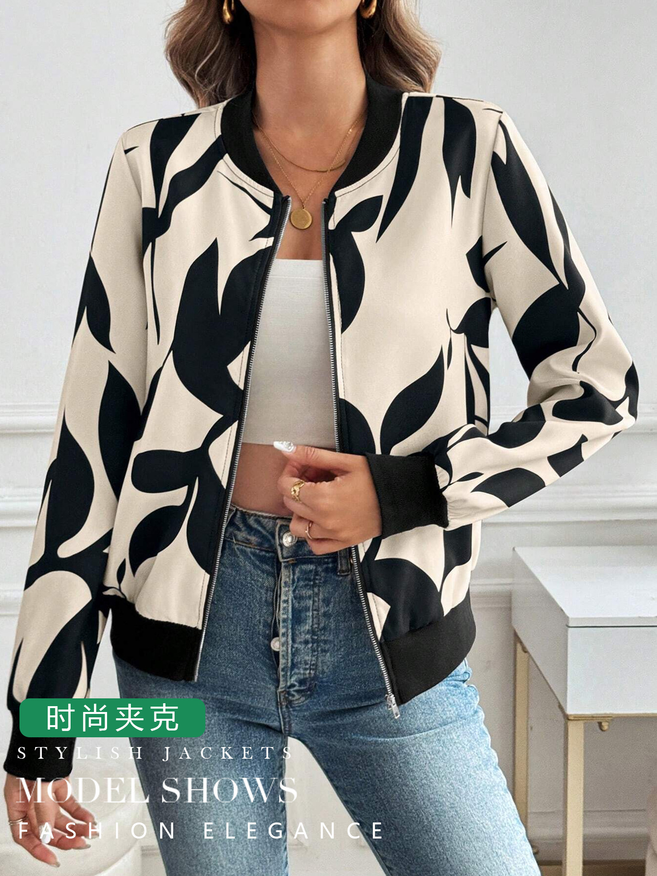 유럽과 미국의 국경 간 Amazon 2025 가을 겨울 새로운 스타일 프린트 지퍼 재킷 슬리밍 기질 통근 캐주얼 재킷 여성용