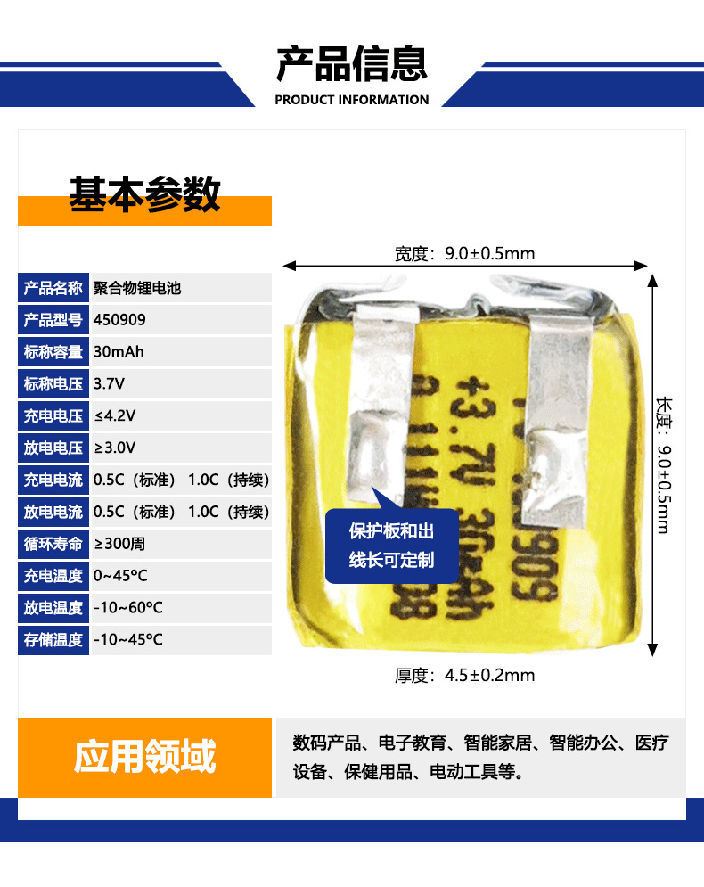 450909 폴리머 리튬 배터리 3.7V30mAh 블루투스 헤드셋 배터리 소용량 전자 선물 전용