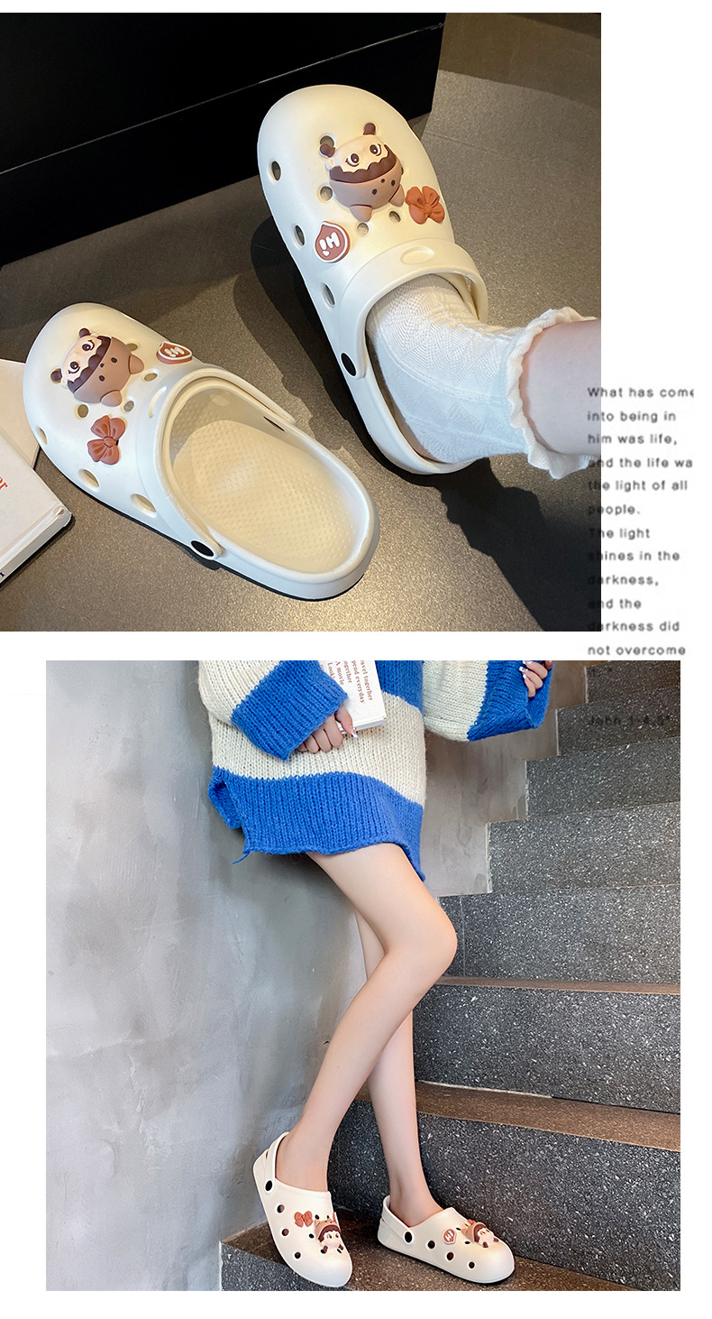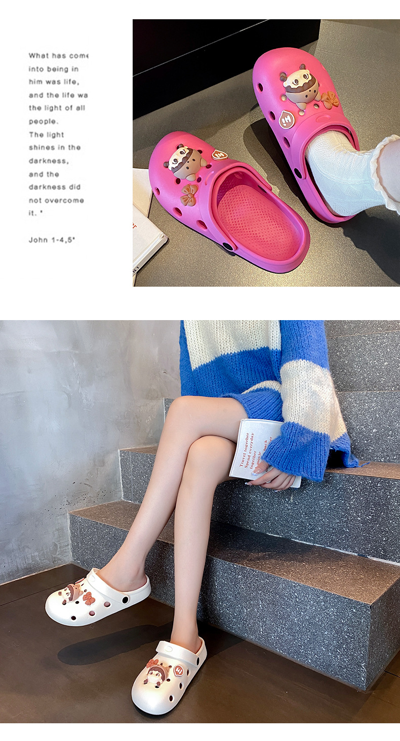 여성용 여름 아우터용 슬립온 슈즈 2024 남성용 신형 미끄럼 방지 두꺼운 밑창 비치 슈즈 발가락 반슬리퍼스토어 가기