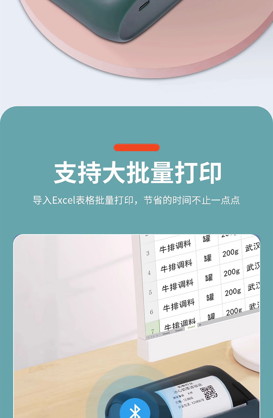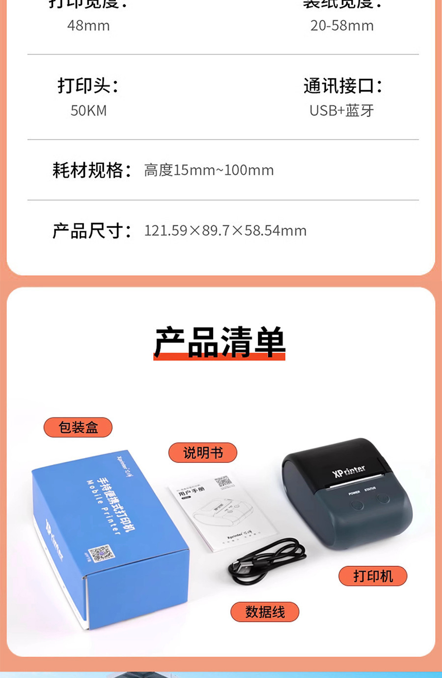 Xinye XP-P203A 블루투스 휴대용 소형 라벨 프린터 핸드헬드 휴대용 열전사 스티커 바코드 태그스토어 가기