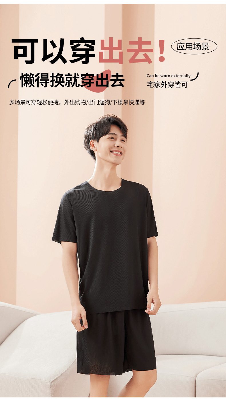 아이스 실크 원활한 잠옷 여름 새로운 캐주얼 라운드 넥 반팔 커플 멋진 잠옷 초박형 홈웨어 세트스토어 가기