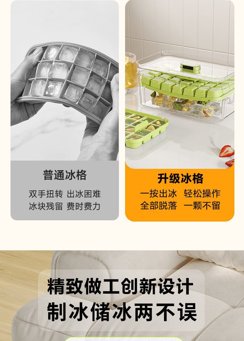 식품 등급 프레스 아이스 트레이 가정용 냉장고 수제 아이스 큐브 보관 상자 냉동 아이스 큐브 몰드 아이스 큐브 제조기 식품 보충 트레이