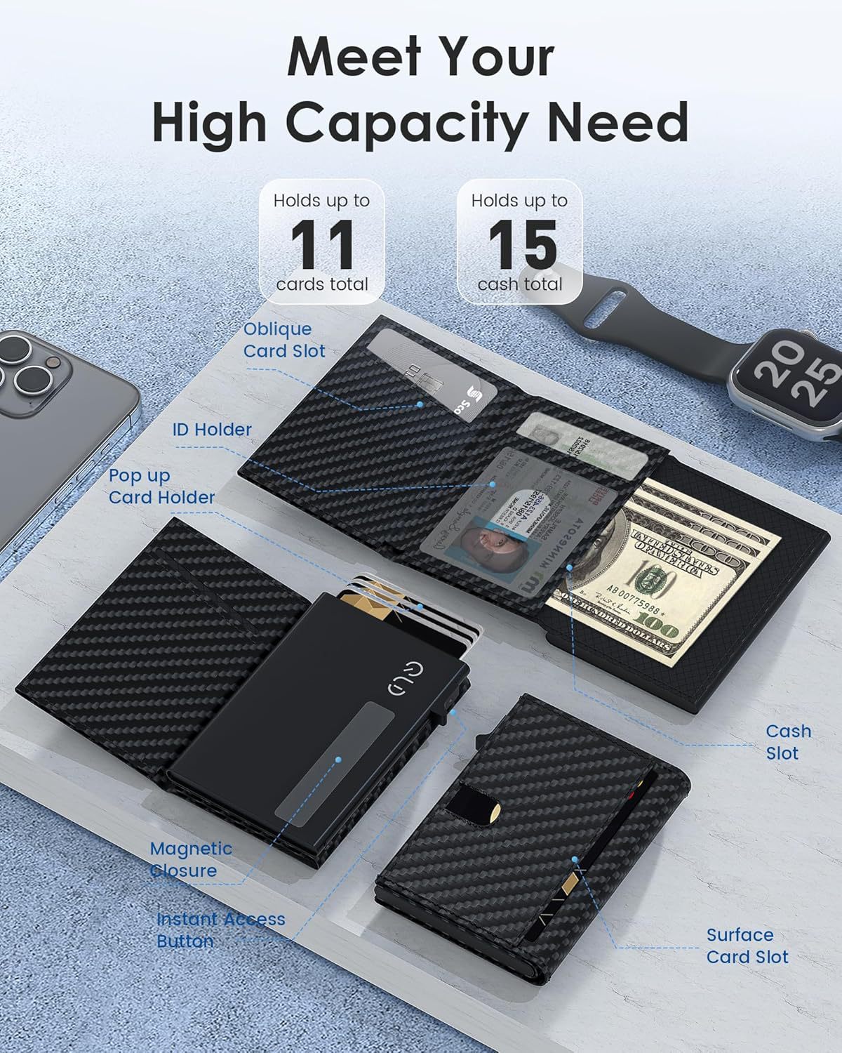 Amazon 초박형 자동 카드 발사 금속 카드 홀더 RFID 도난 방지 카드 상자 멀티 카드 슬롯 70% off 남성용 지갑