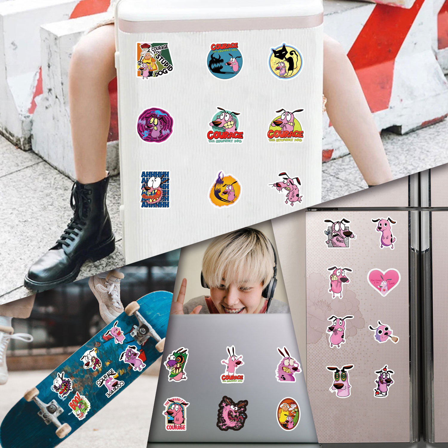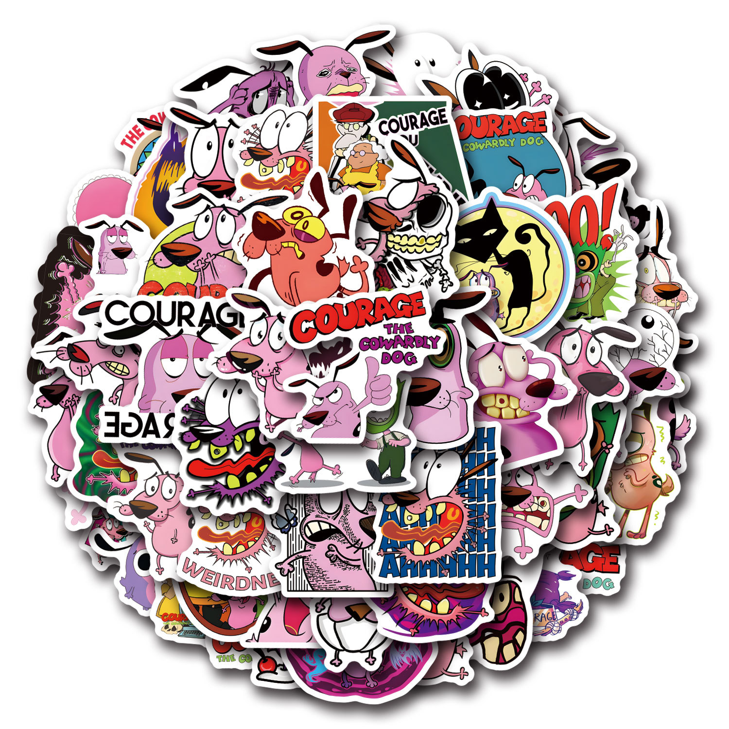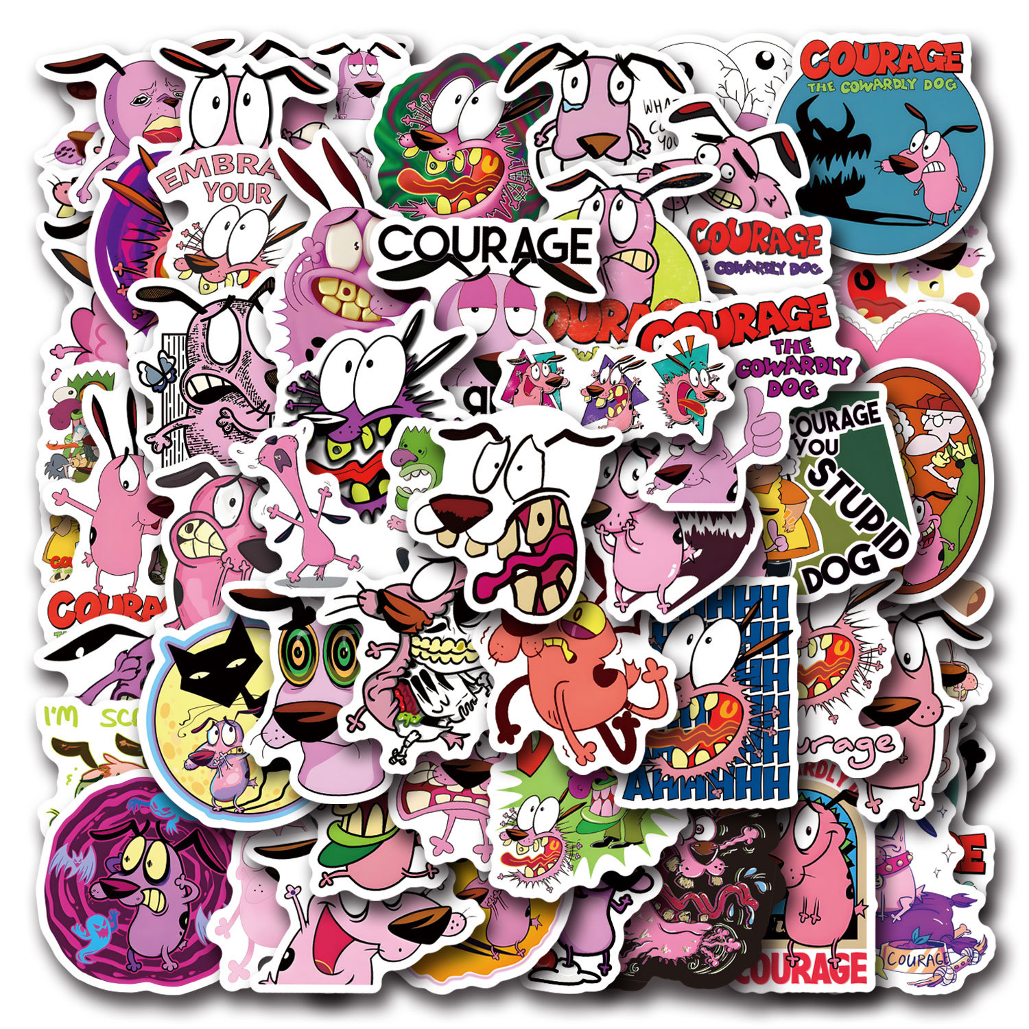 55张跨境卡通胆小狗英雄涂鸦贴纸装饰手账文具水杯电脑防水贴画