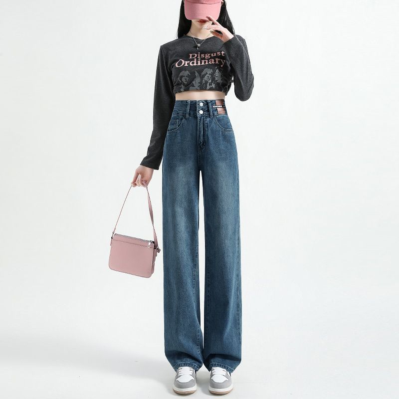 몸집이 작은 분들을 위한 레트로 디스트레스드 하이웨이스트 청바지, 슬림한 아우터, 루즈한 팬츠, 여름 여성용 와이드 팬츠 2025스토어 가기