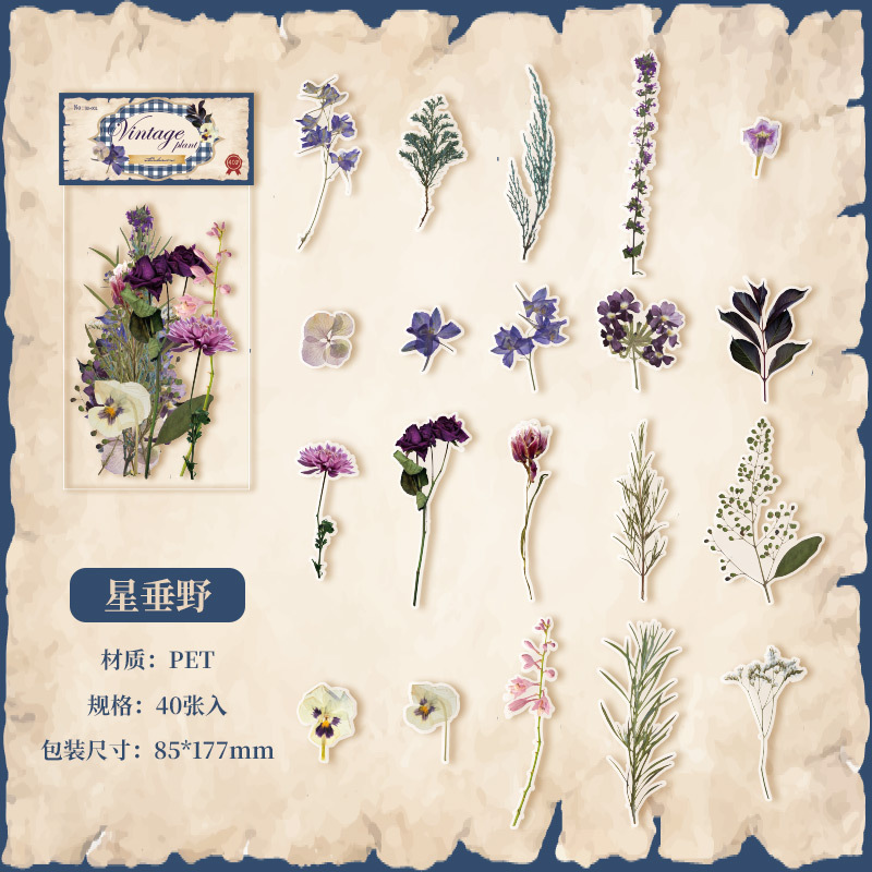Muran PET 스티커 팩 Linwu Old Words 시리즈 식물 무료 콜라주 핸드북 장식 재료 스티커 30개스토어 가기