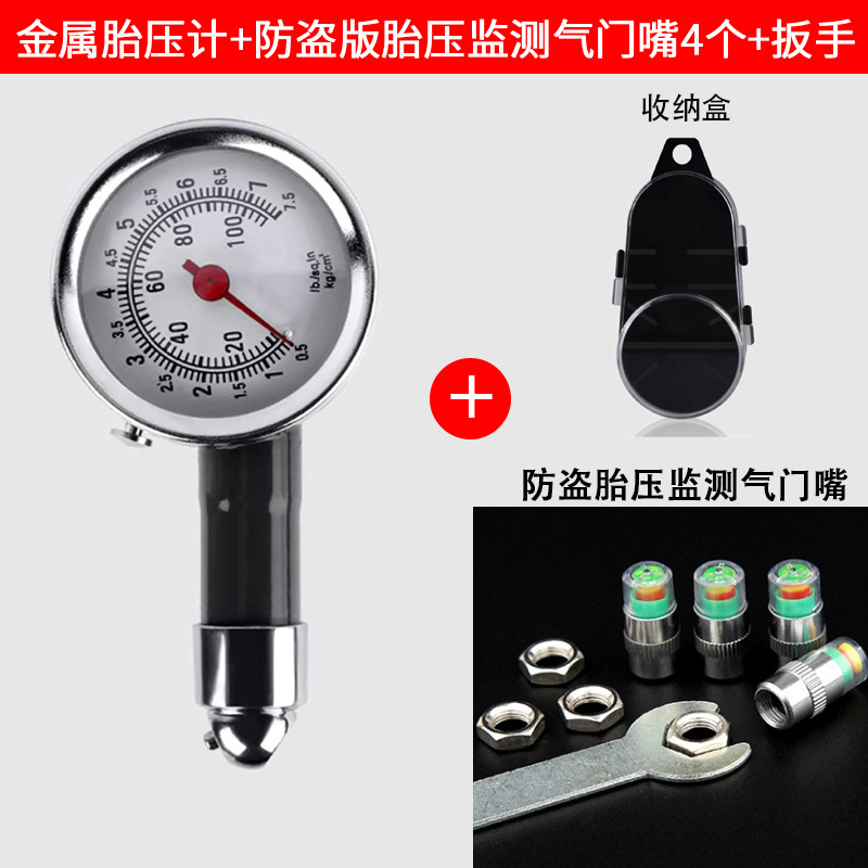 • 금속 상자 타이어 압력 게이지 + 도난 방지 실시간 타이어 압력 밸브 캡 감지 4개 + 렌치