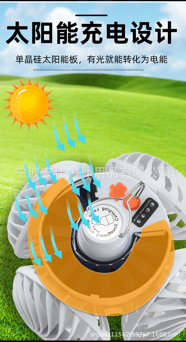 태양 축구 팬 빛 야외 LED 전구 태양 캠핑 팬 빛 충전식 벽걸이 팬스토어 가기