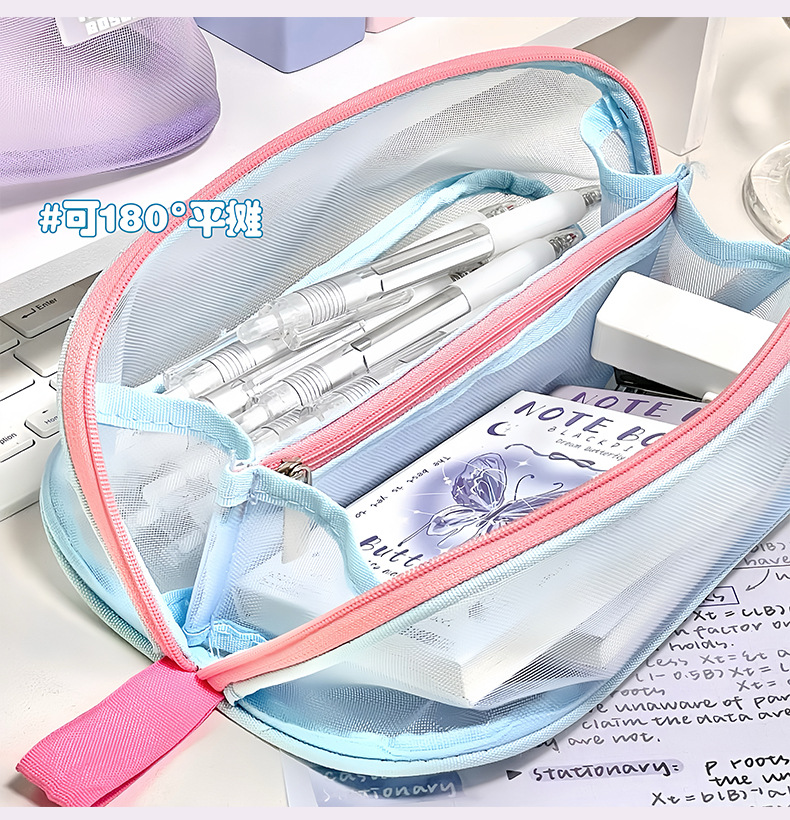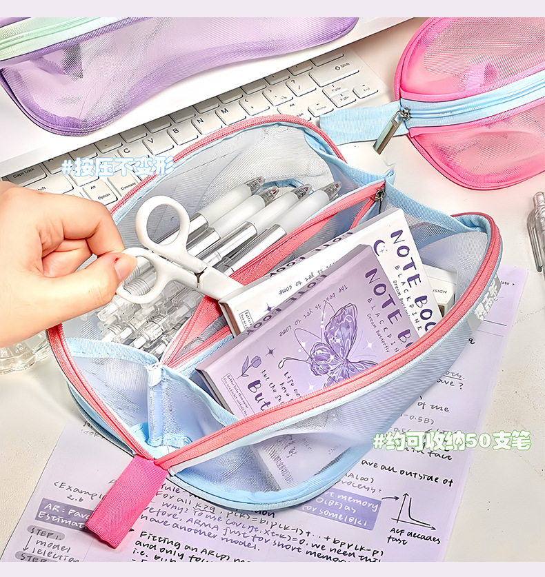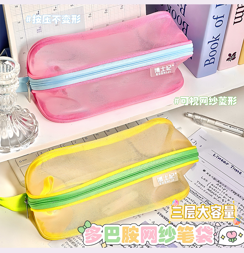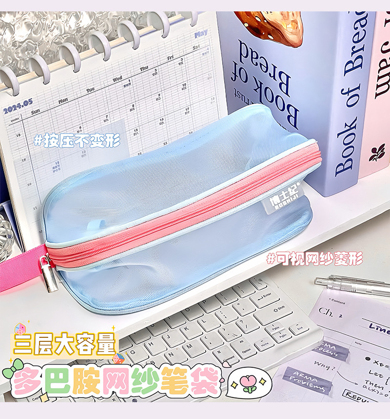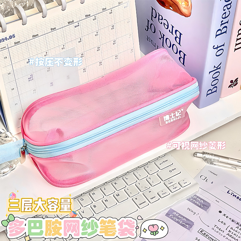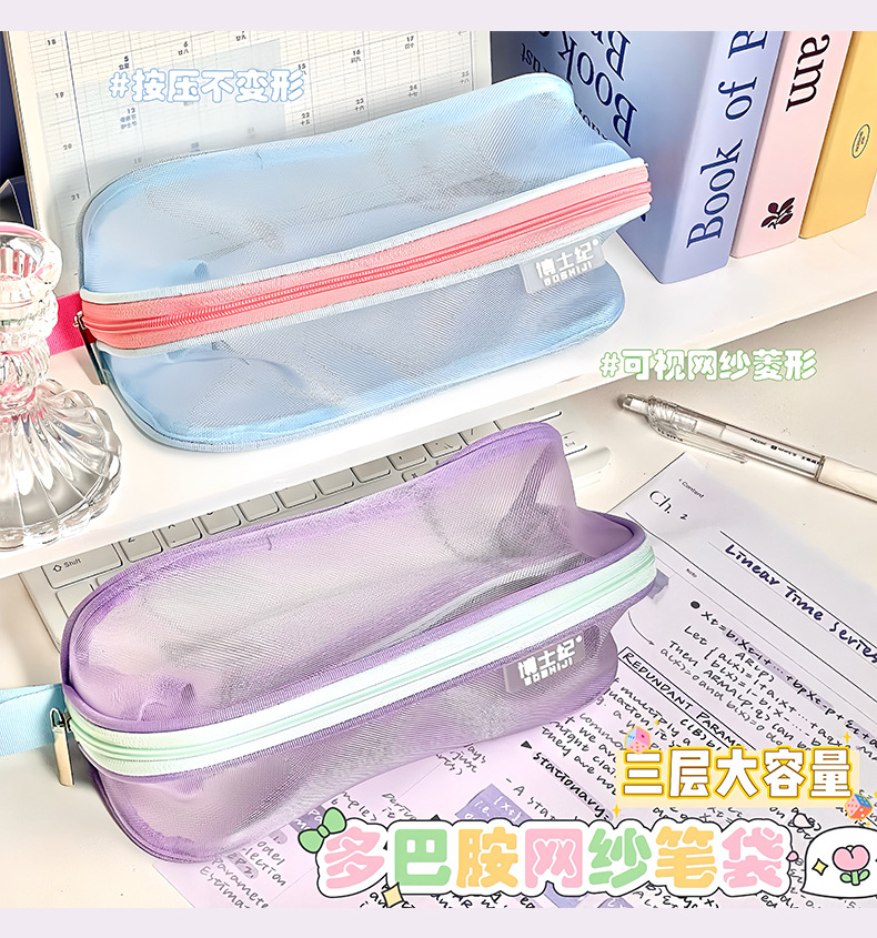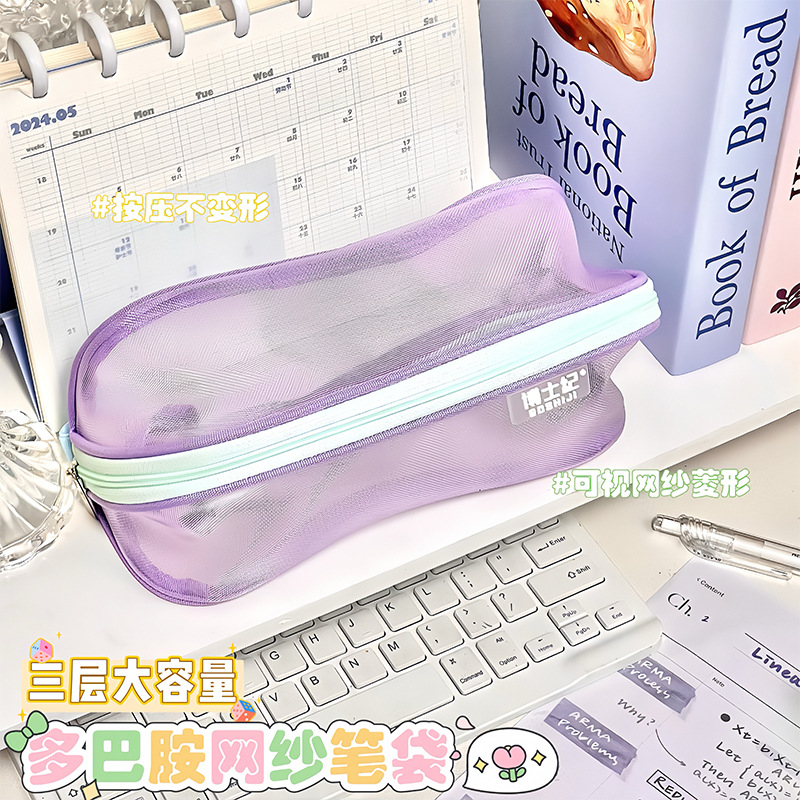 고급스러운 컬러감의 대용량 필통, 입체적인 마름모 메쉬 필통, 3겹 대형 오픈 학생 문구 가방 수납