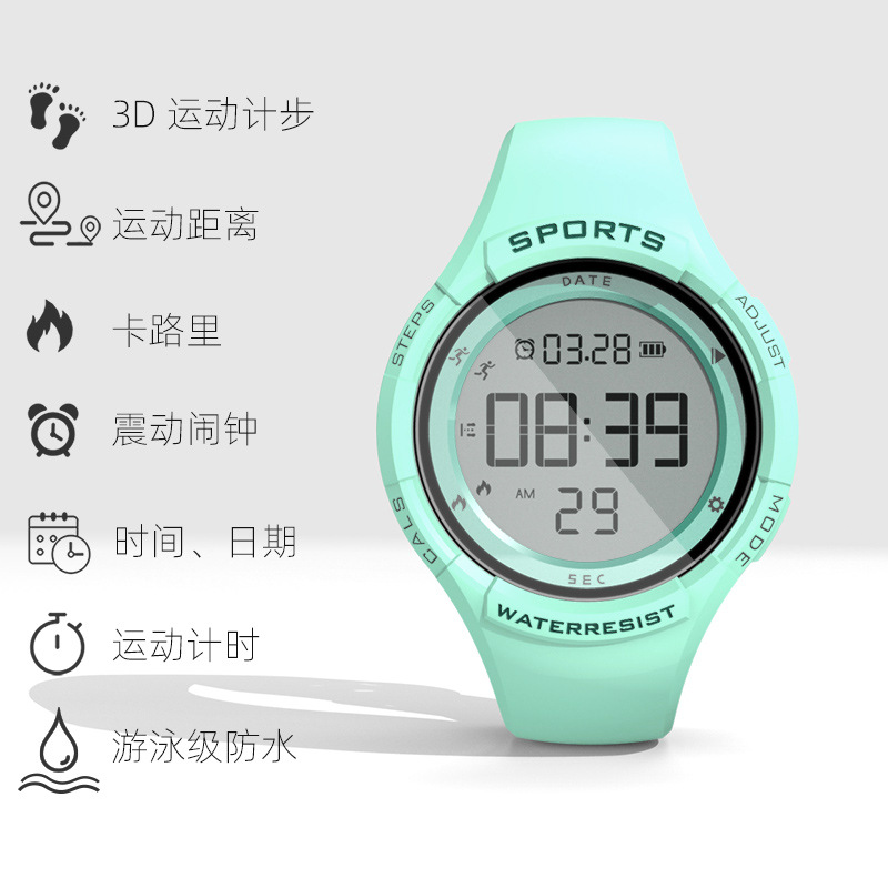 공장 제품 학생 알람 시계 단계 계산 시계 스포츠 방수 남성과 여성 중학생 소녀 어린이 진동 전자 시계