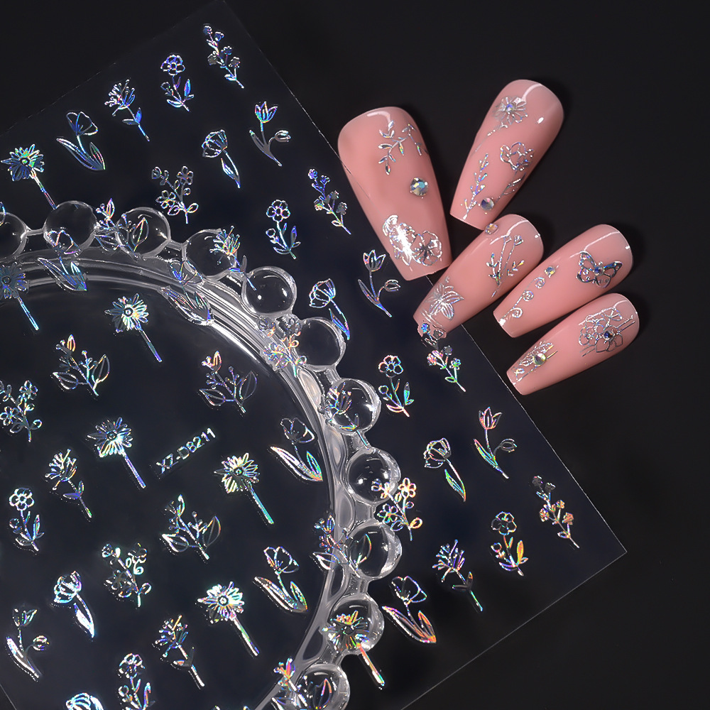 국경 간 인기 식물 네일 아트 스티커 작은 신선한 봄과 여름 꽃과 잎 접착제 방수 네일 아트 장식 스티커