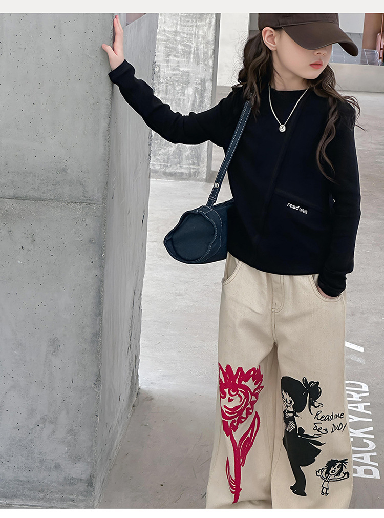 여아용 검은색 셔츠 가을 2025 새로운 아동용 캐주얼 탑 여아용 가을 긴팔 티셔츠