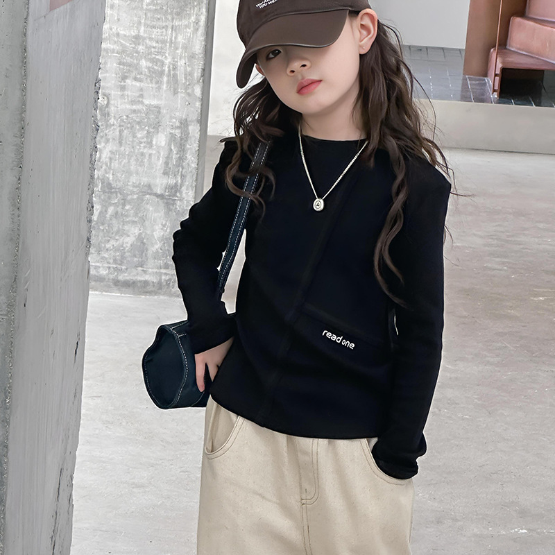 여아용 검은색 셔츠 가을 2025 새로운 아동용 캐주얼 탑 여아용 가을 긴팔 티셔츠스토어 가기