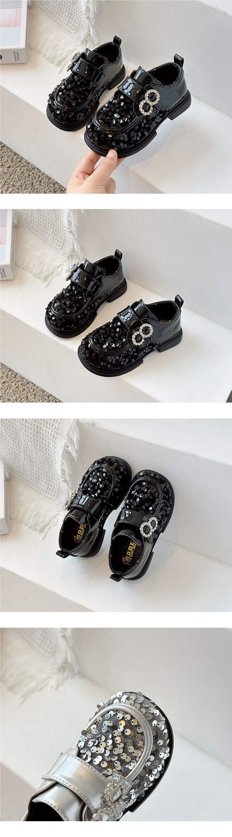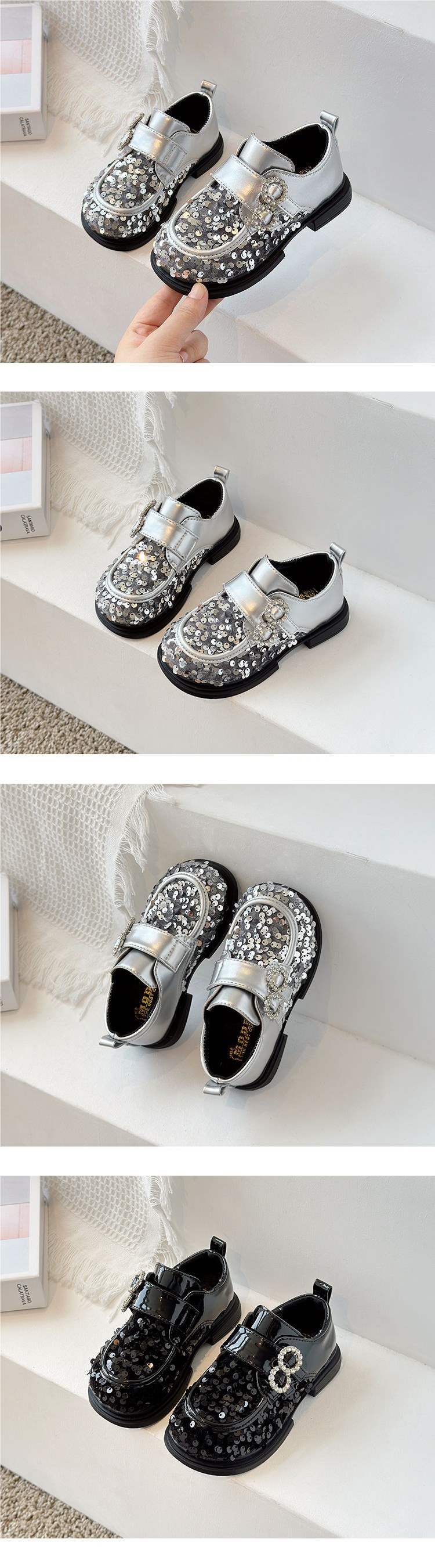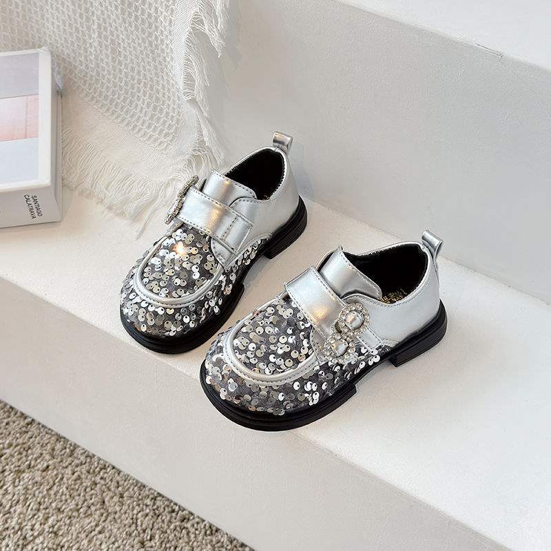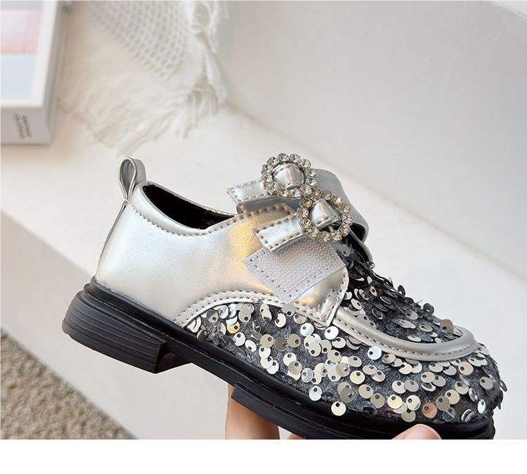여자 새로운 중국 스타일 스팽글 실버 작은 가죽 신발 2025 봄과 가을 새로운 어린이 유행 신발 메리 제인 신발스토어 가기