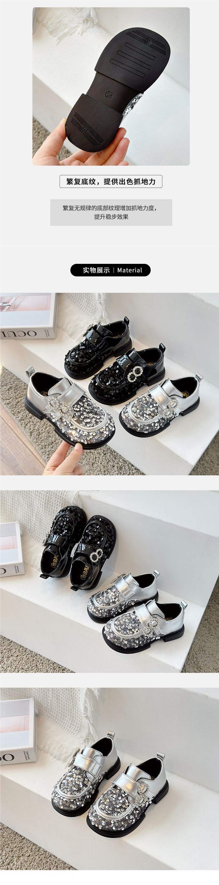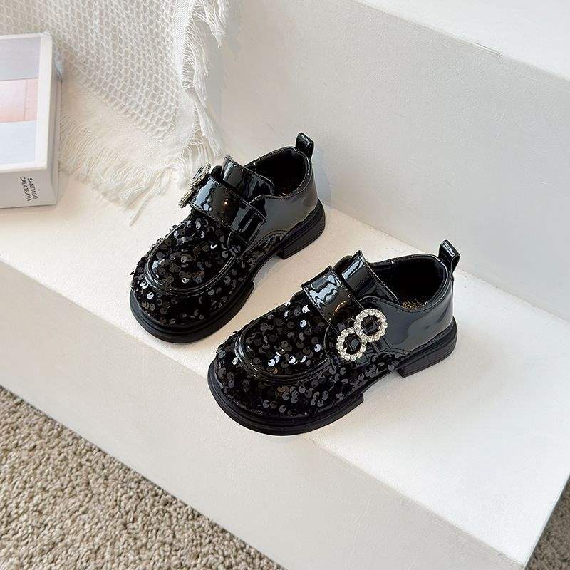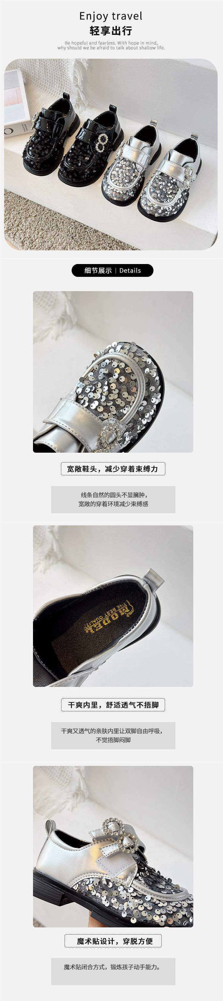 여자 새로운 중국 스타일 스팽글 실버 작은 가죽 신발 2025 봄과 가을 새로운 어린이 유행 신발 메리 제인 신발스토어 가기