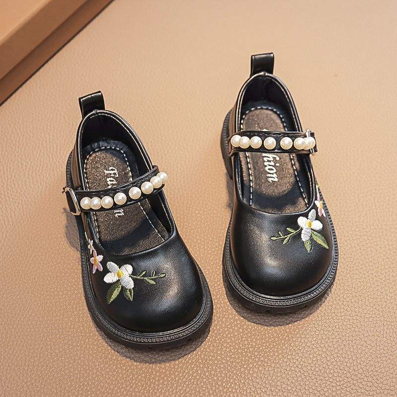 여자 가죽 신발 2025 봄과 가을 새로운 스타일 수 놓은 패션 공주 신발 어린이 진주 부드러운 단독 유행 캐주얼 신발 유행