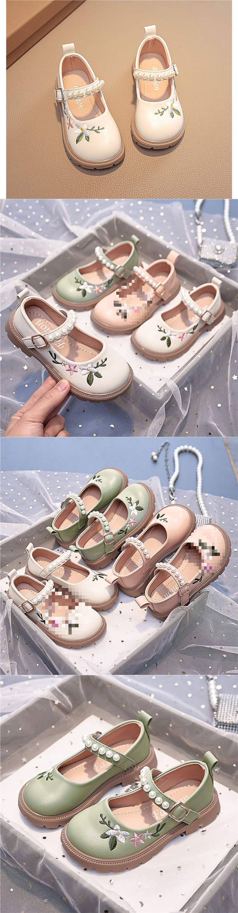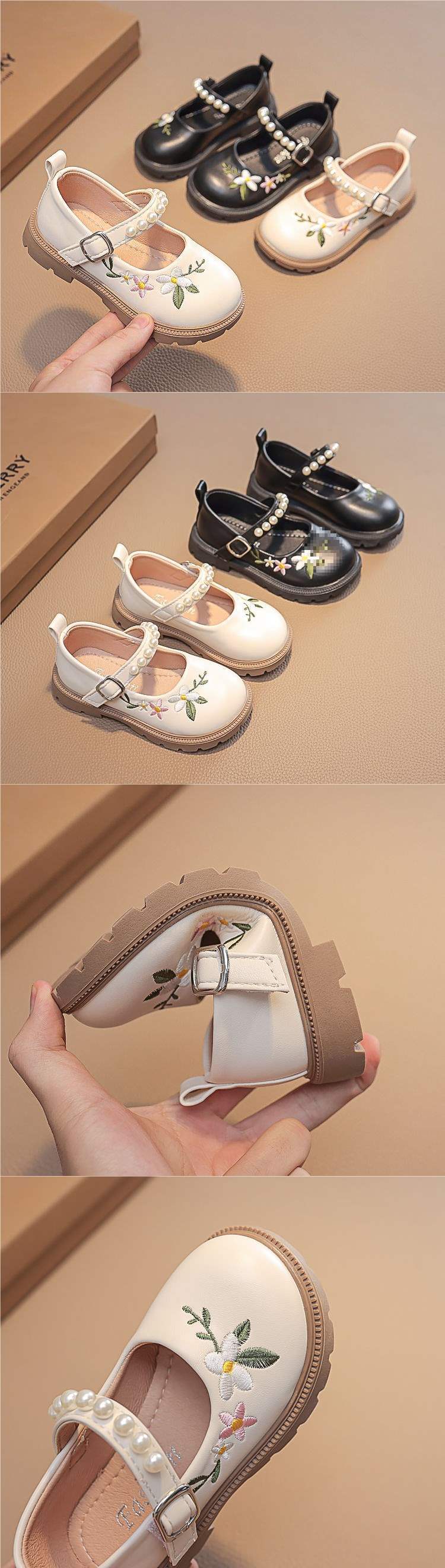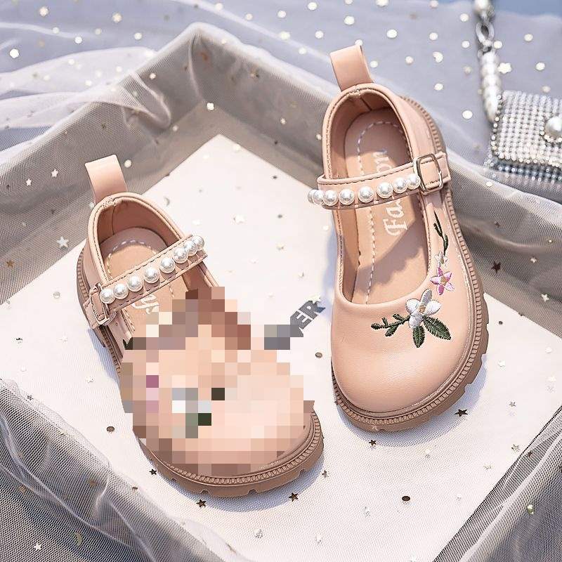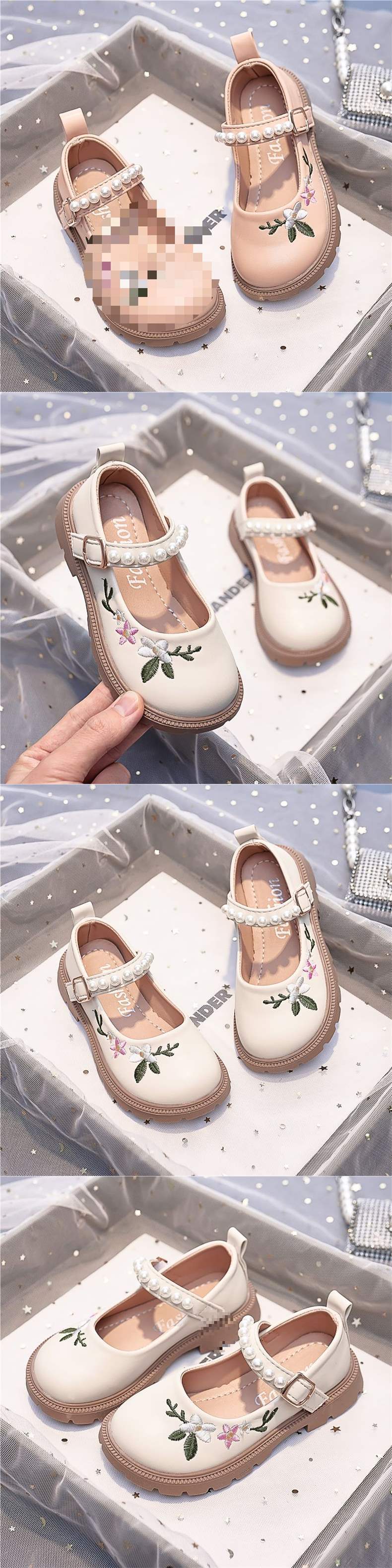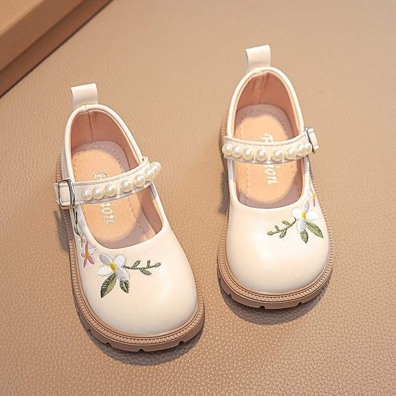 여자 가죽 신발 2025 봄과 가을 새로운 스타일 수 놓은 패션 공주 신발 어린이 진주 부드러운 단독 유행 캐주얼 신발 유행스토어 가기