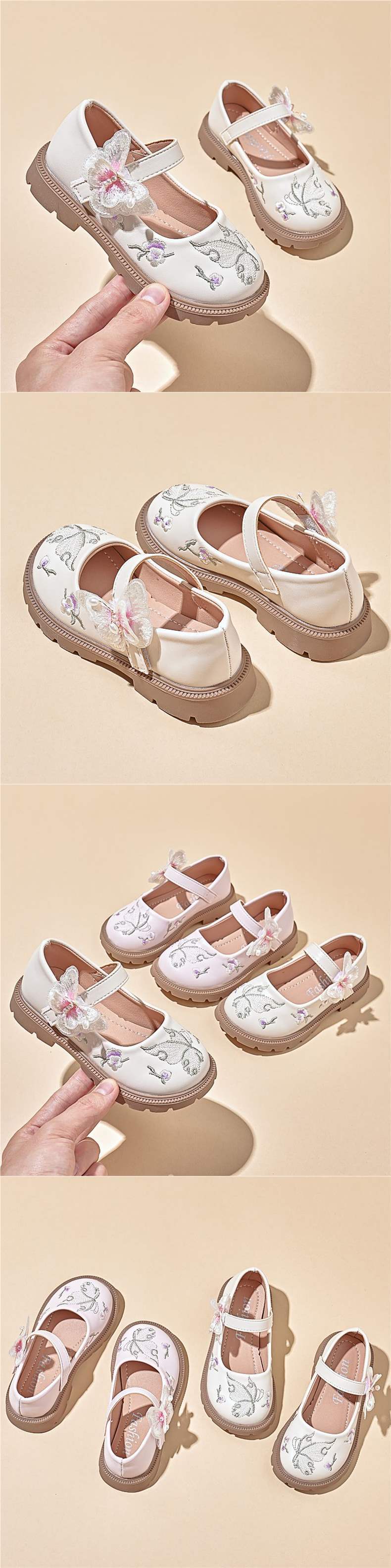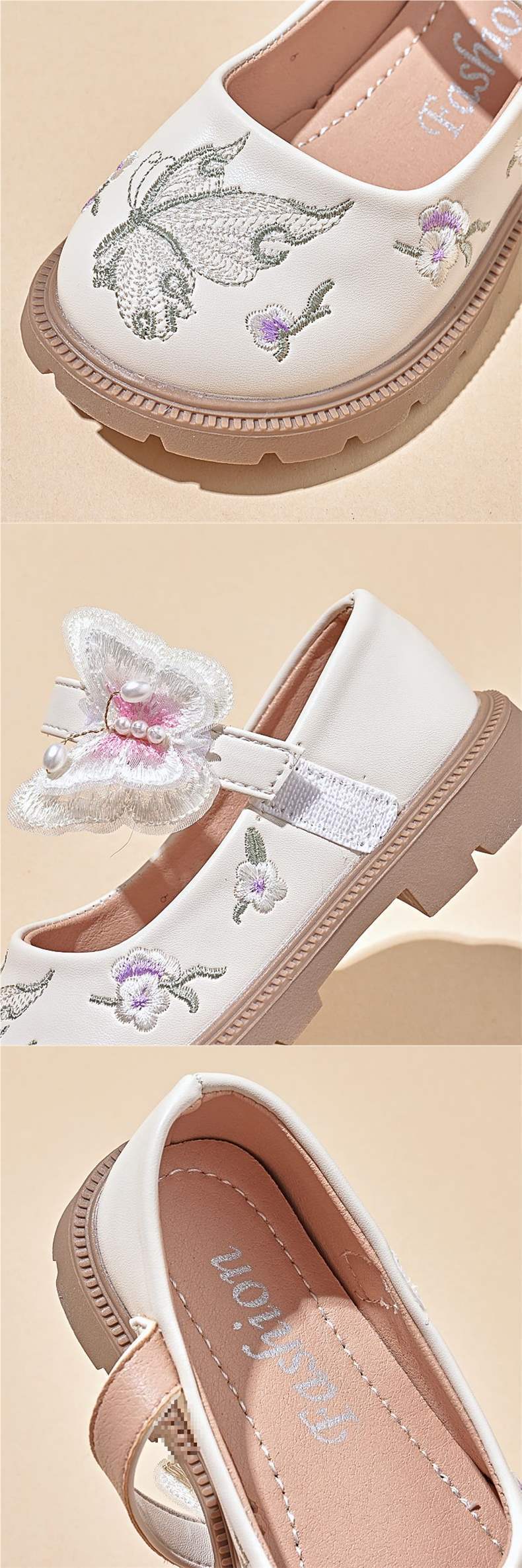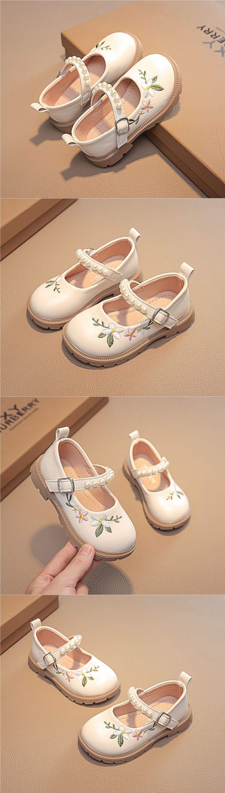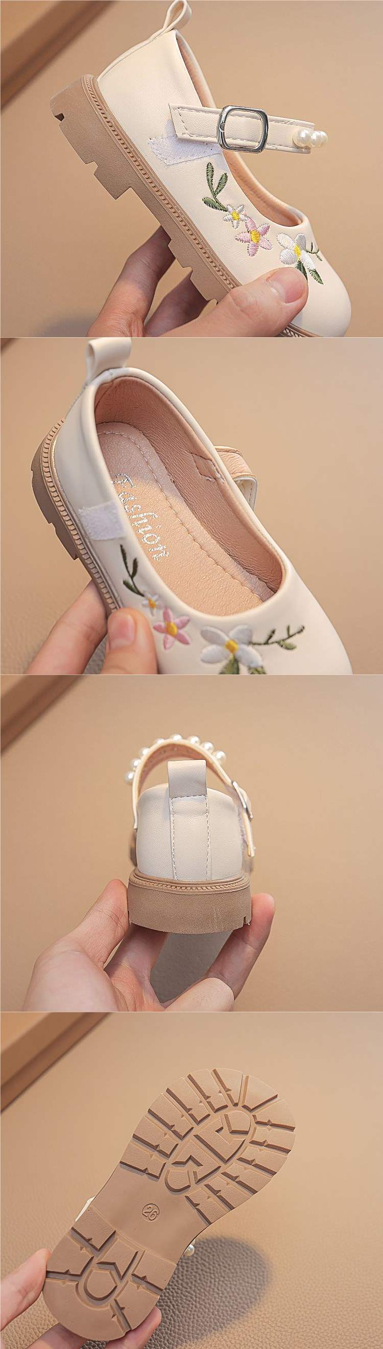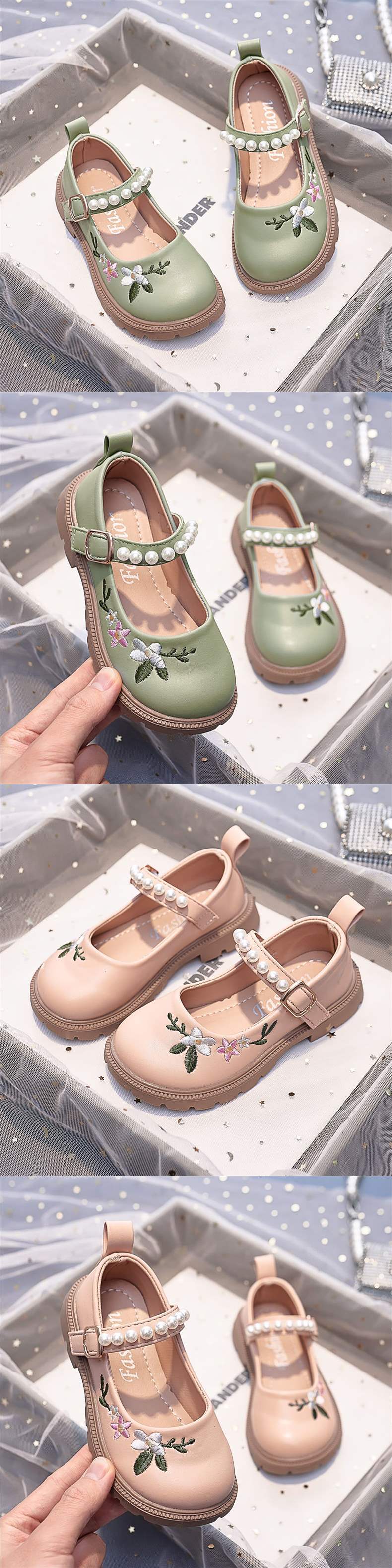 여자 가죽 신발 2025 봄과 가을 새로운 스타일 수 놓은 패션 공주 신발 어린이 진주 부드러운 단독 유행 캐주얼 신발 유행스토어 가기