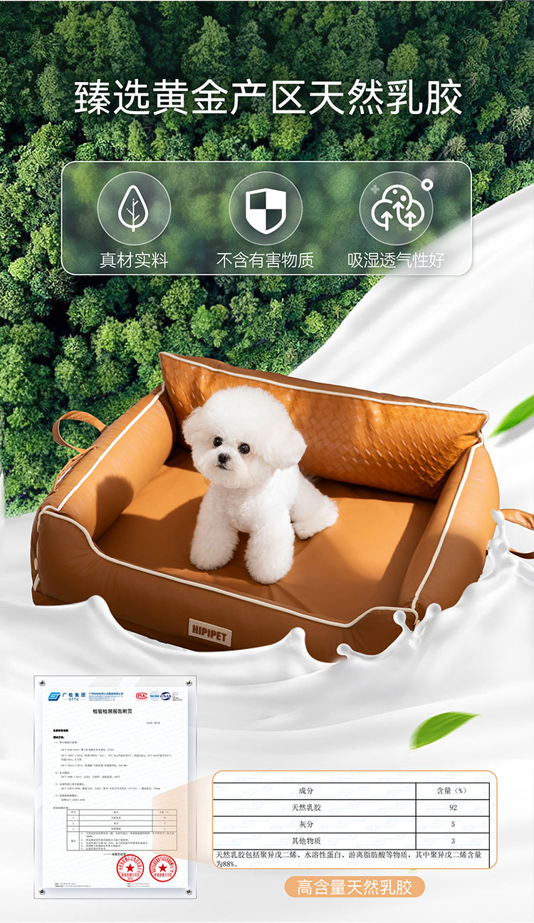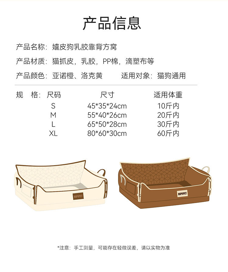 새로운 애완동물 침대, 사계절 사용 가능, 가을 겨울 라텍스 등받이 사각 침대, 중소형견 수면용 고급 강아지 침대