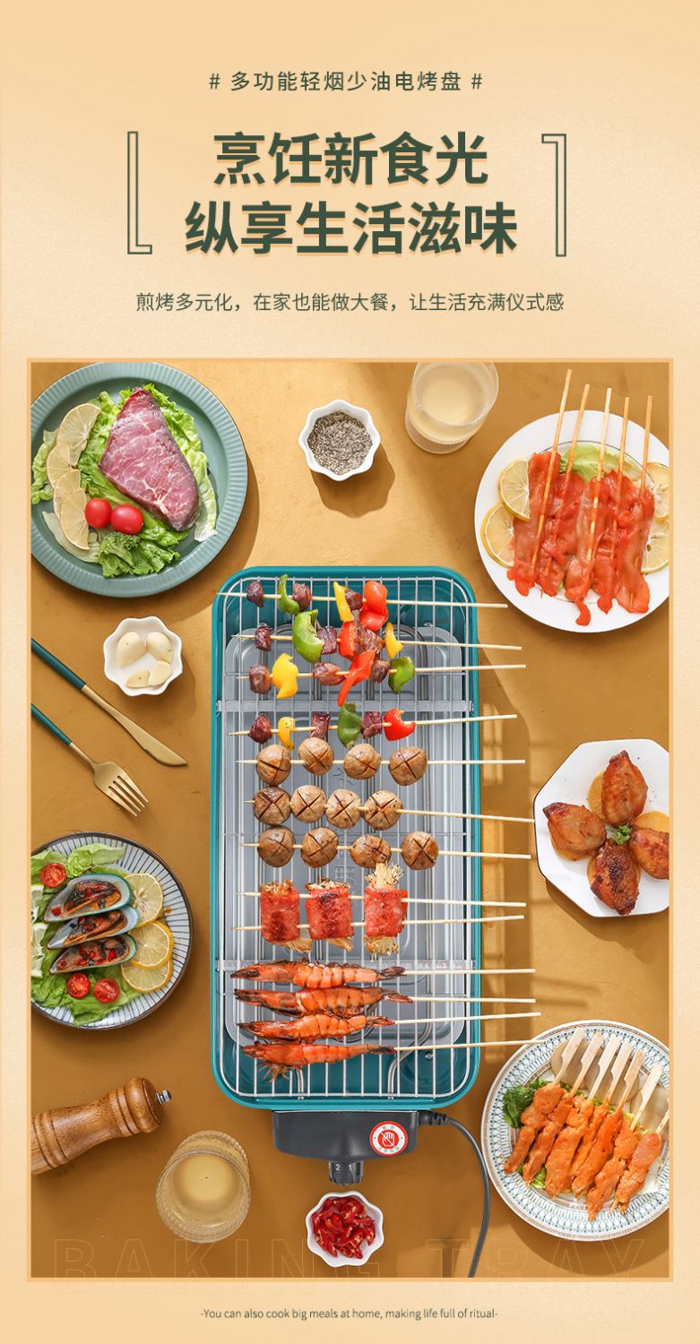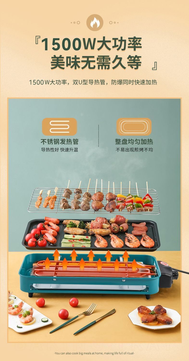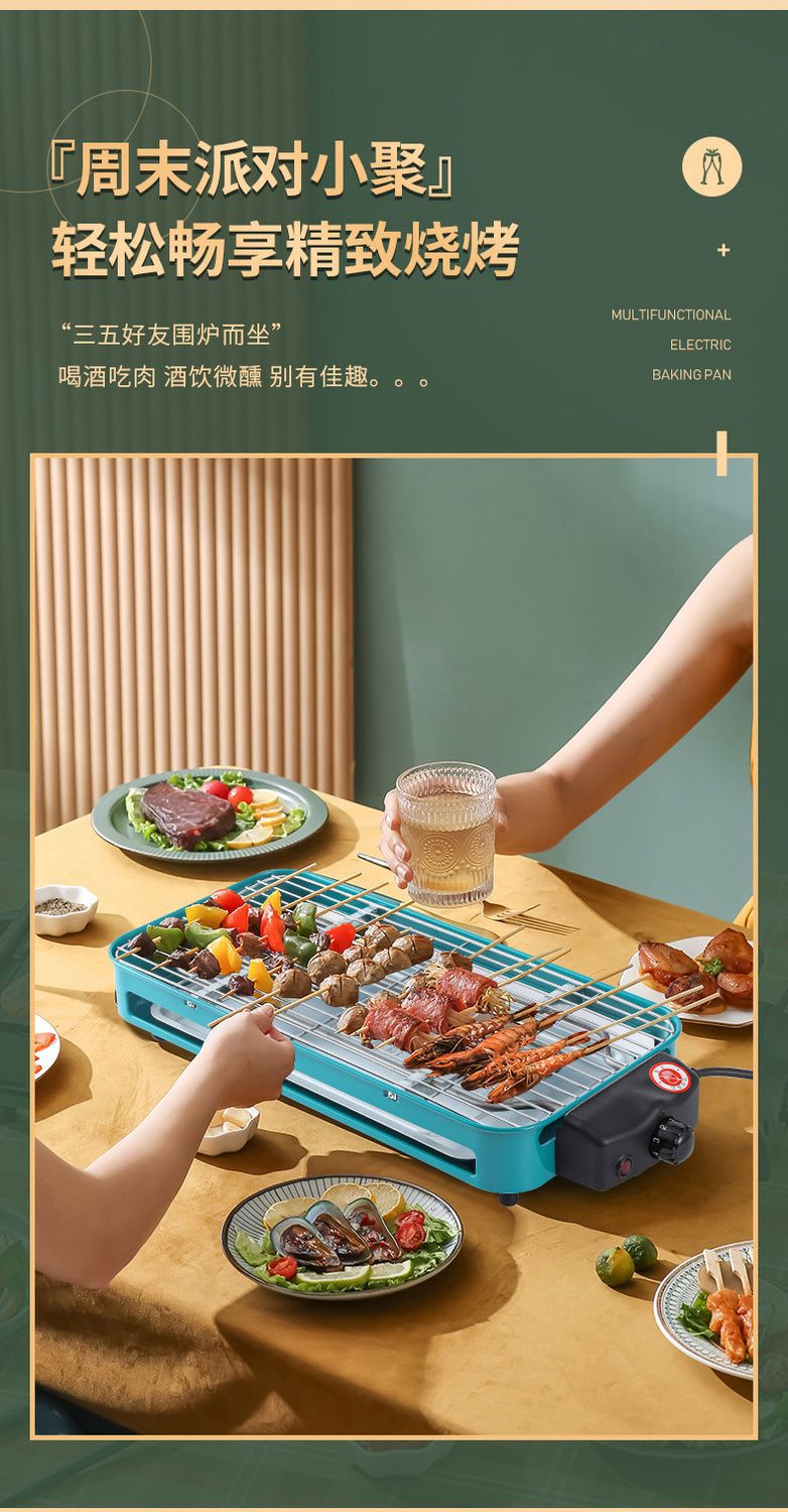 电烤炉家用烧烤炉室内无烟新款电烤盘多功能烤肉烤串机家庭烧烤架