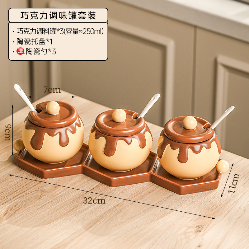 • 초콜릿 양념병*3+트레이 세트(세라믹 스푼*3 포함)