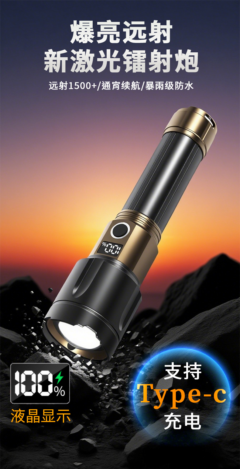 강력한 레이저 총, 매우 밝고 다기능 휴대용 손전등, 매우 긴 배터리 수명, 장거리 휴대용, 가정용 및 실외 작업용