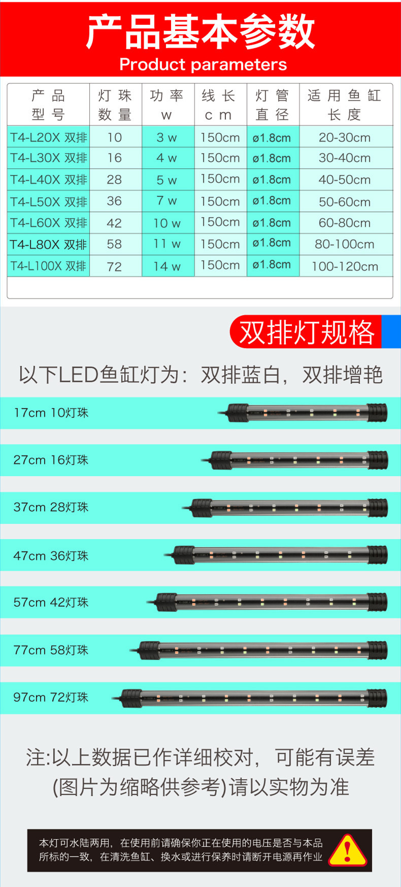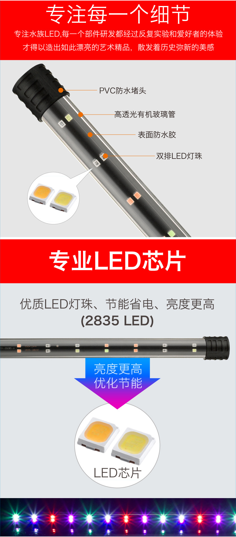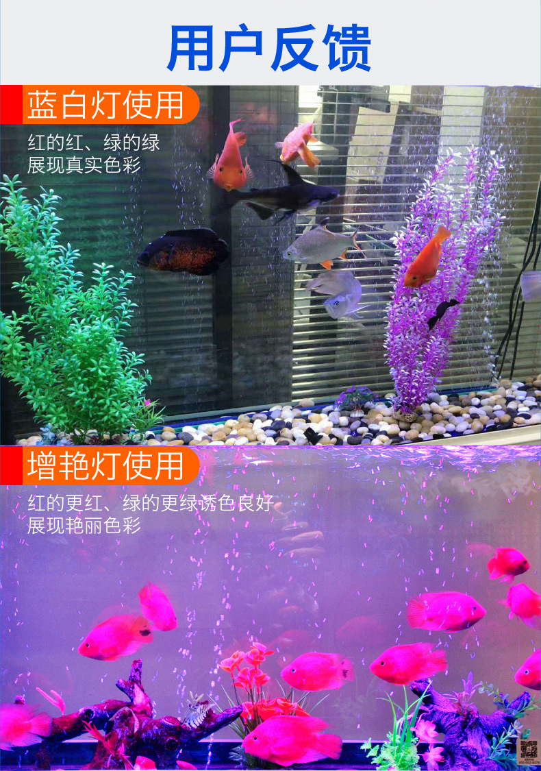 高亮潜水鱼缸灯 LED光源防水照明水草水族箱增艳白蓝灯金鱼灯跨境