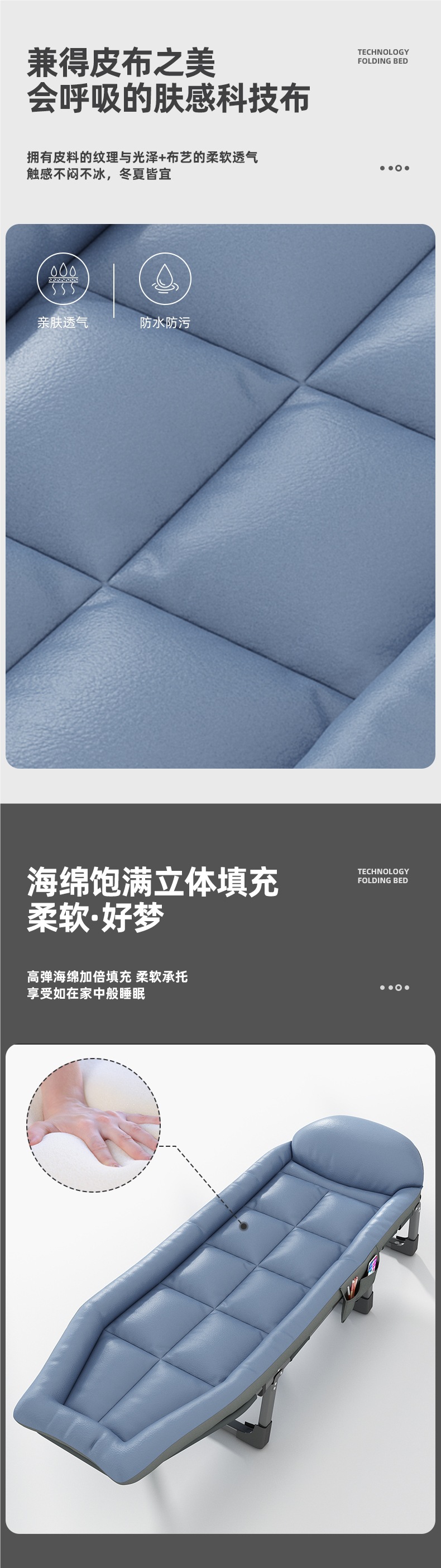 • 테크니컬 천 [매트리스 일체형 전체 길이 2m ] 헤드레스트 포함 헤이즈 블루