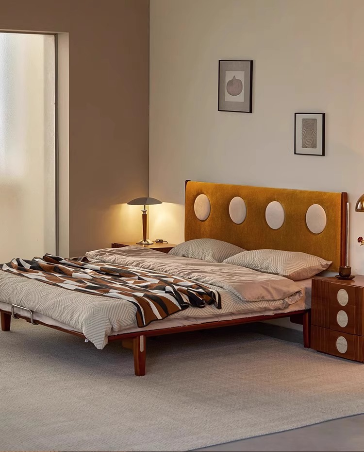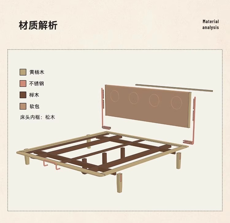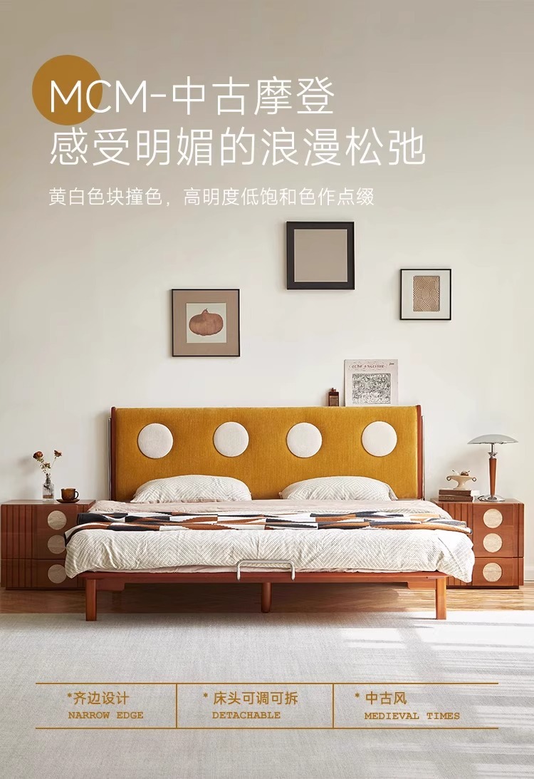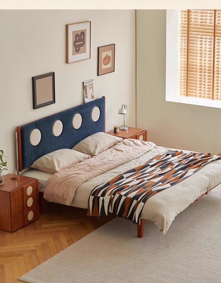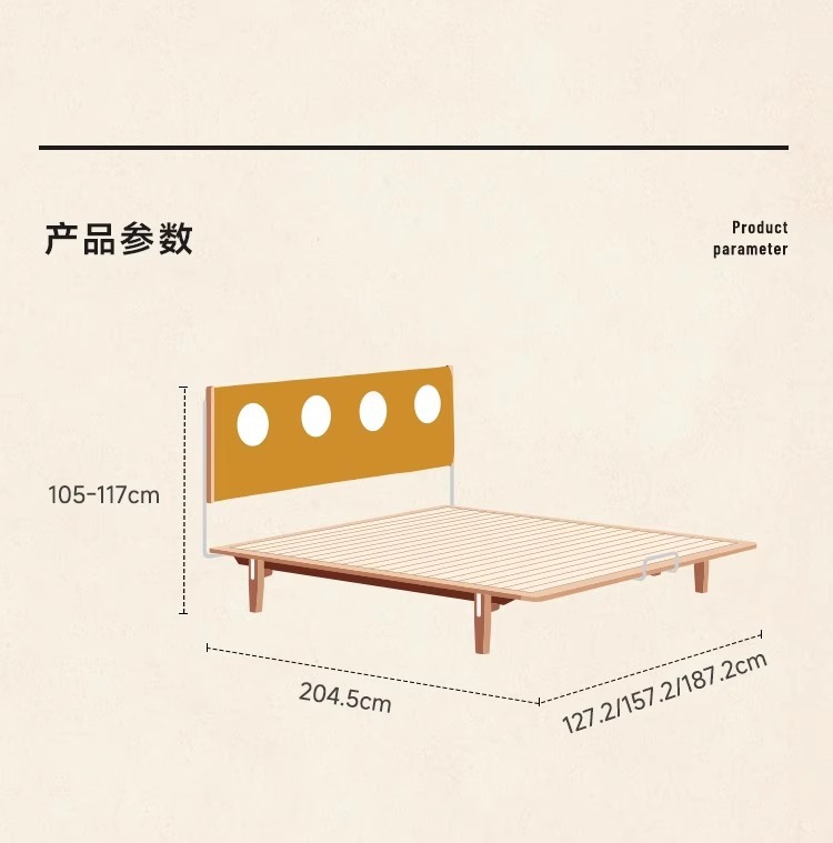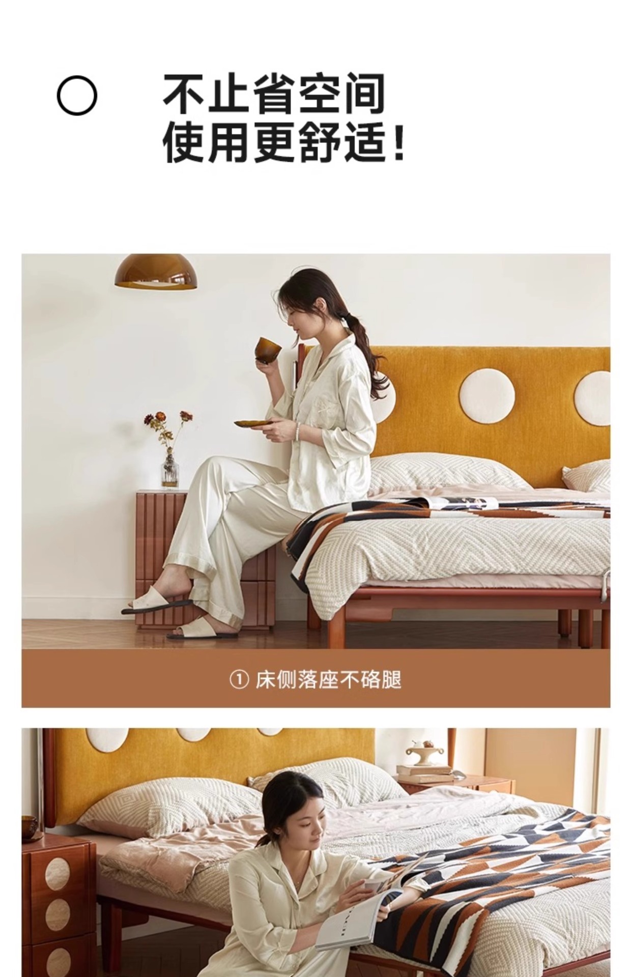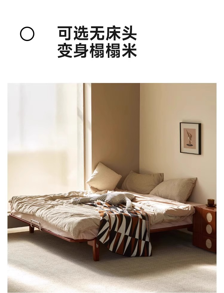 소형 2인용 침실을 위한 원목 침대, 중고 소프트백 더블 침대, 가장자리 없는 침대 옆 다다미 침대, 복고풍 스타일 침대스토어 가기