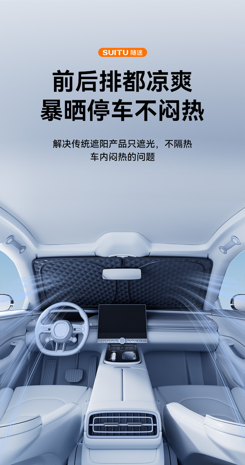 强烈的阳光从侧窗直射进来,不仅刺眼,影响驾车,难以忍受,高温还会损坏到车内的真皮内饰,本遮阳挡,有效隔热及高温照射,方便使用!