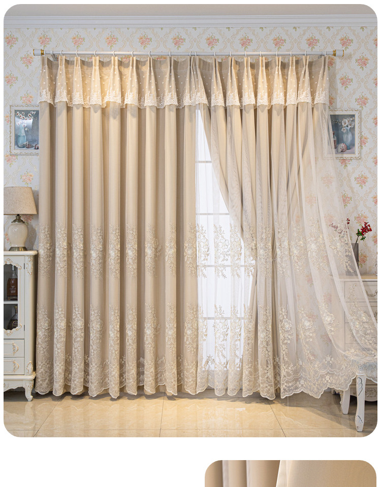 침실과 거실을 위한 유럽식 커튼 암막 커튼 봉 세트, 가벼운 고급 천 원단 일체형 더블 레이어 2025 새로운 스타일