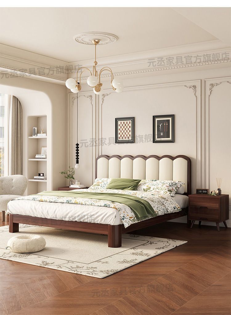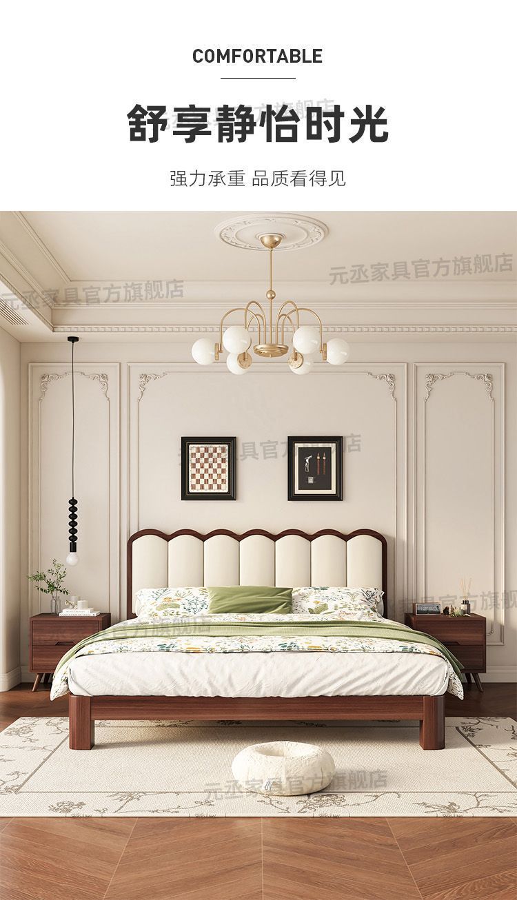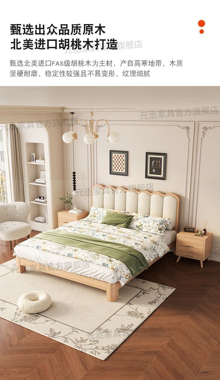 원목 침대 1.8m 아메리칸 더블 침대 앤티크 스타일 마스터 침실 웨딩 침대 호두 가정용 1.2m 어린이 싱글 침대스토어 가기