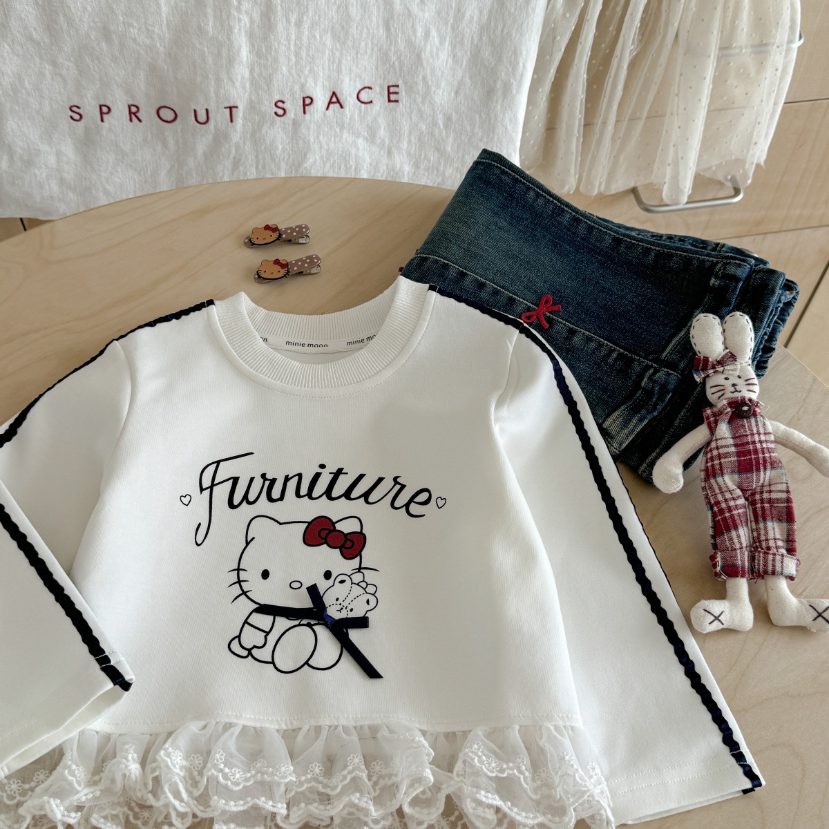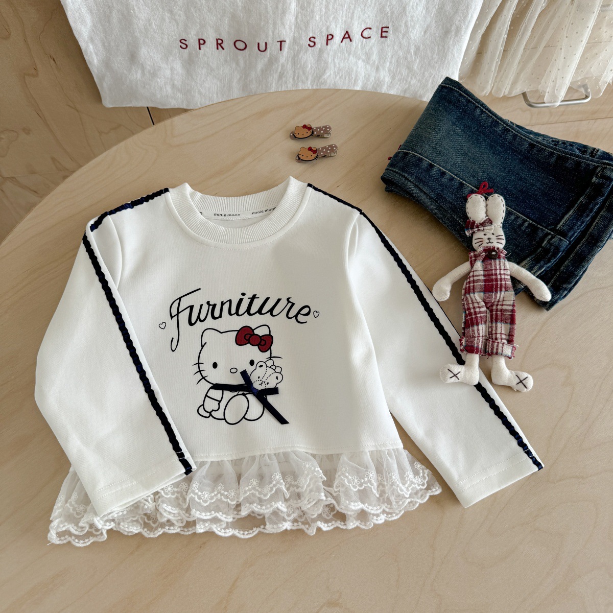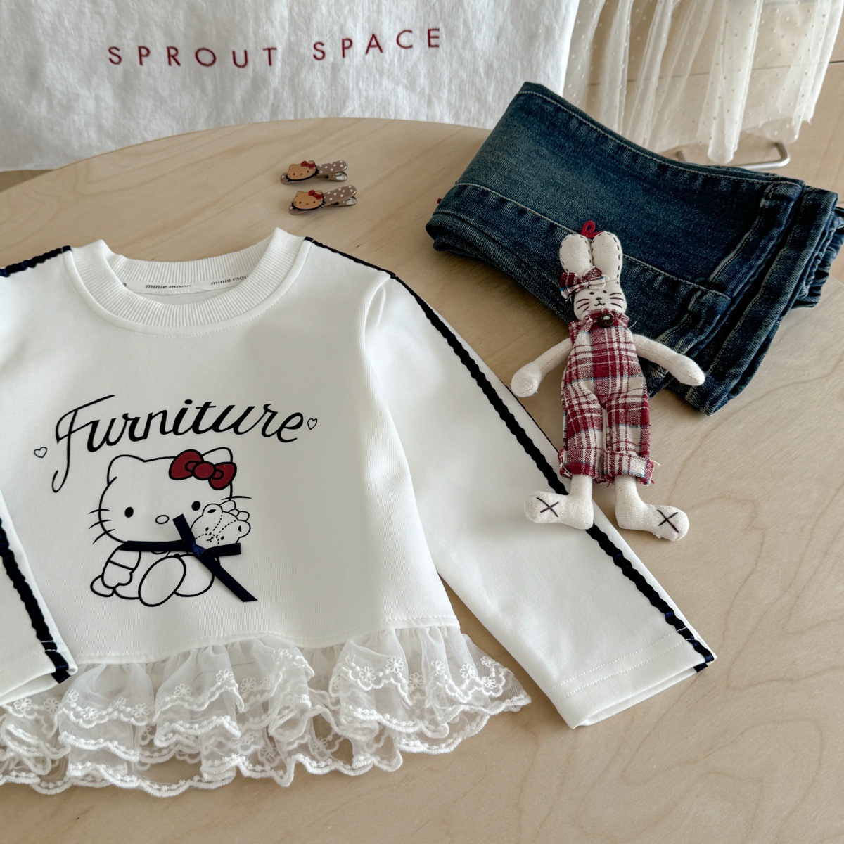 [핑크 하우스] 여자 운동복 새로운 스타일 여자 한국 스타일 만화 KT 고양이 레이스 귀여운 서양식 탑스토어 가기