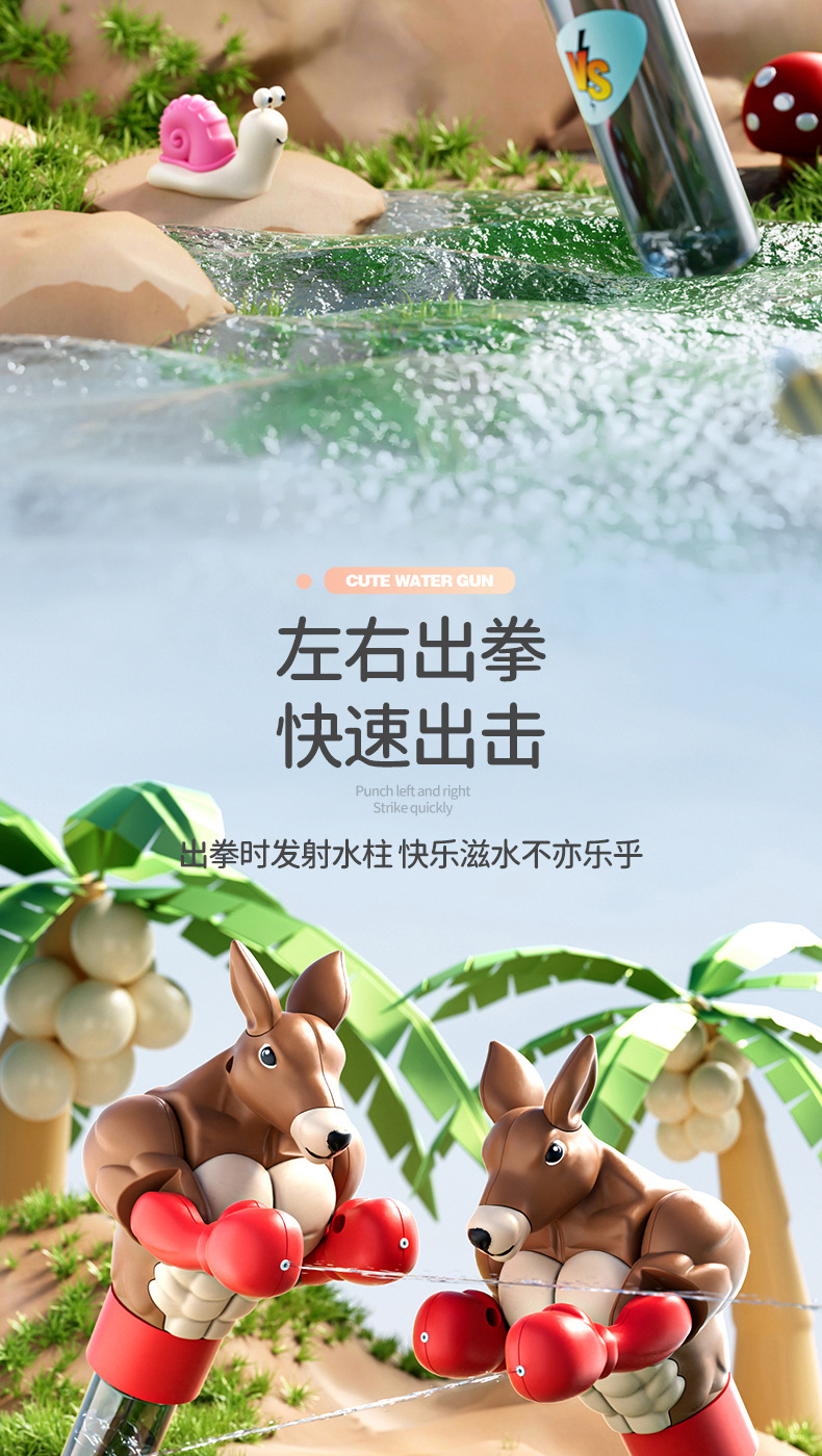 권투 캥거루 물총 장난감 웃긴 물 스프레이 왼쪽 및 오른쪽 펀치 어린이 장난감 근육 캥거루 물총 물 싸움