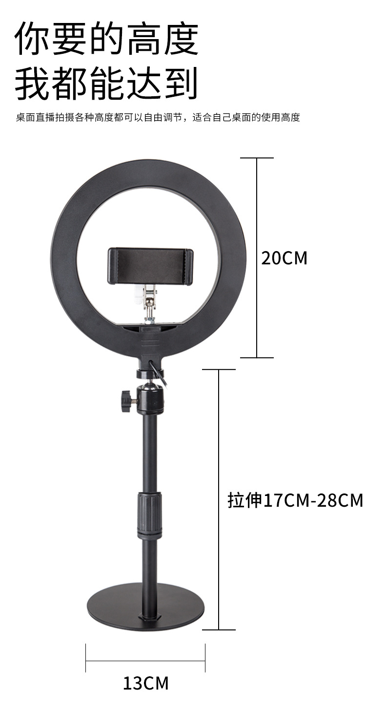 • 대형 금속 디스크 베이스 + 10inch개의 보조 조명 + 휴대폰 카메라 + Kuaishou Douyin 촬영 ★