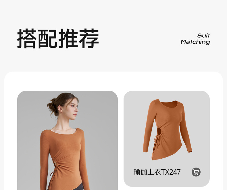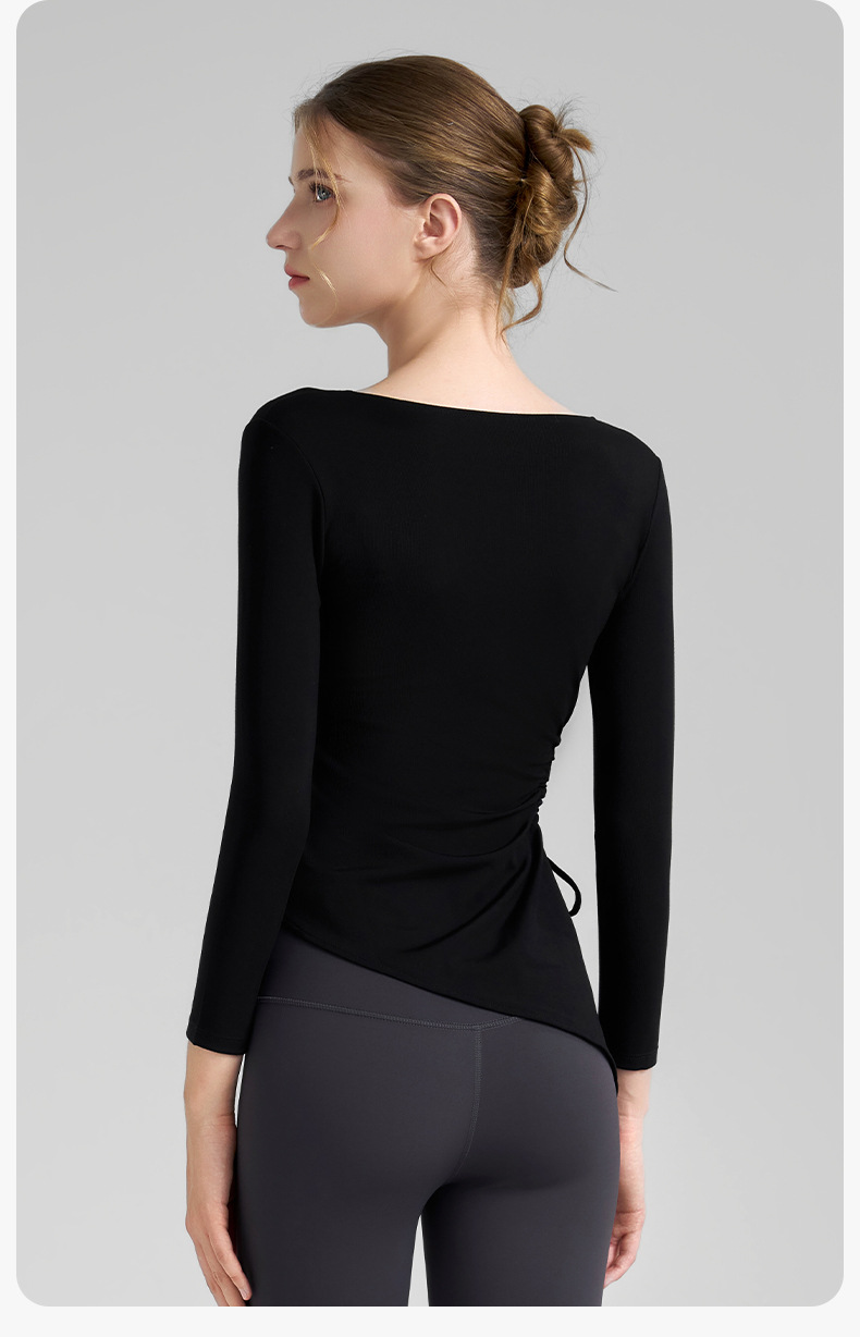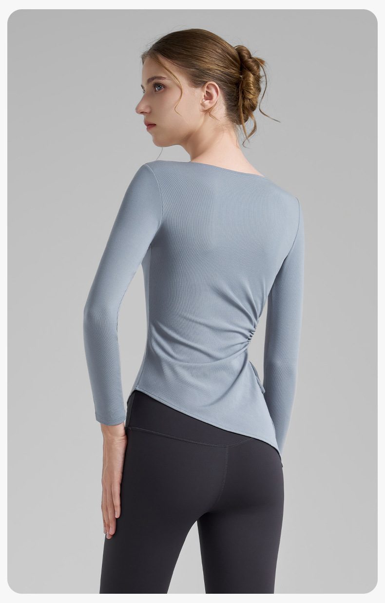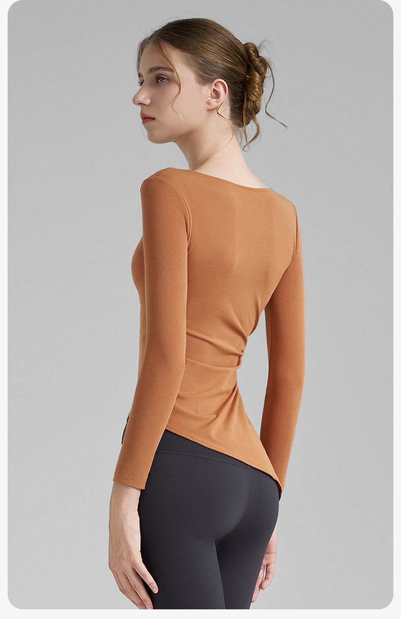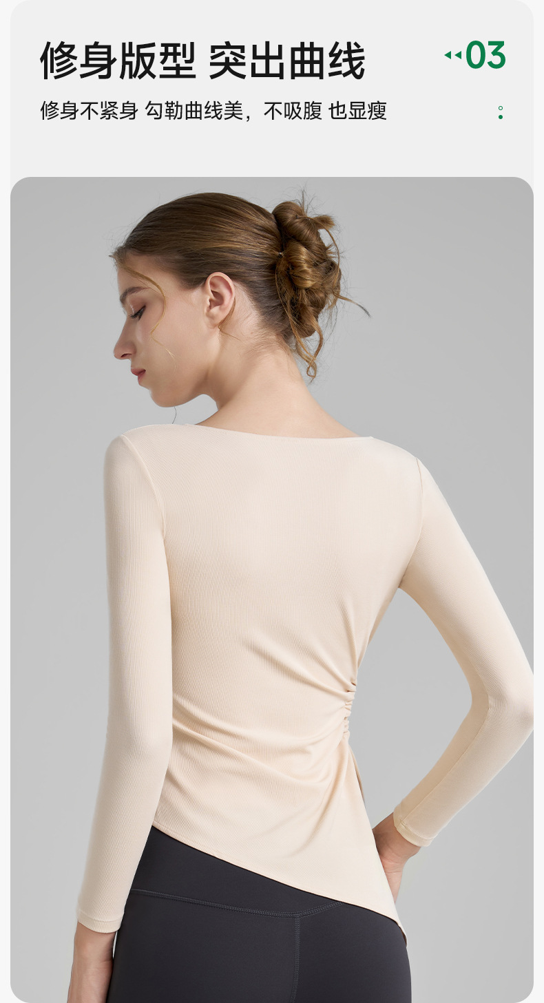 누드톤 고탄력 요가 티셔츠 여성용 고급 가을 신상 요가복 긴팔 조임끈 허리 트임 피트니스복스토어 가기