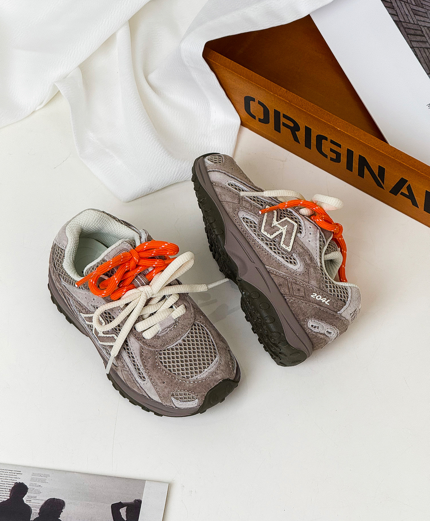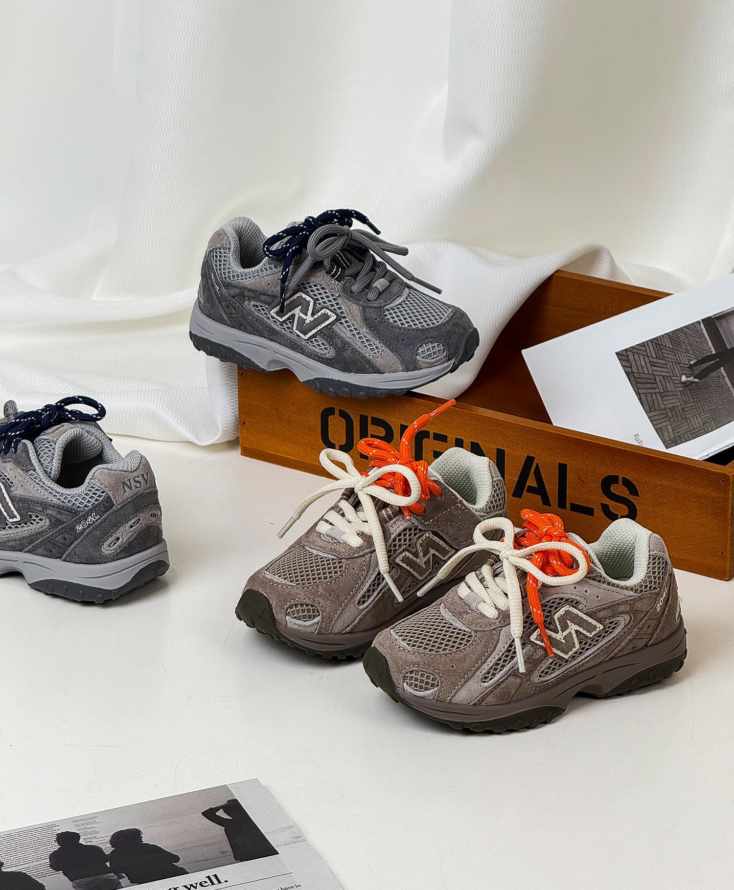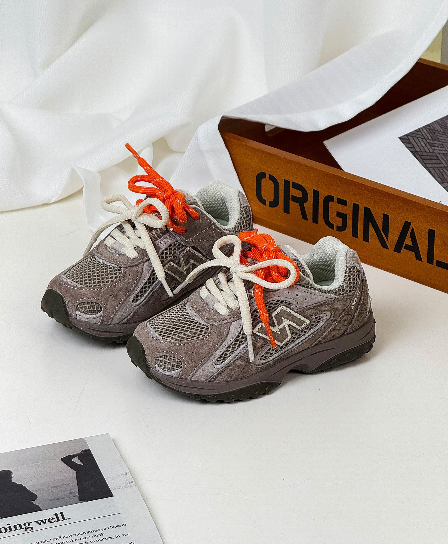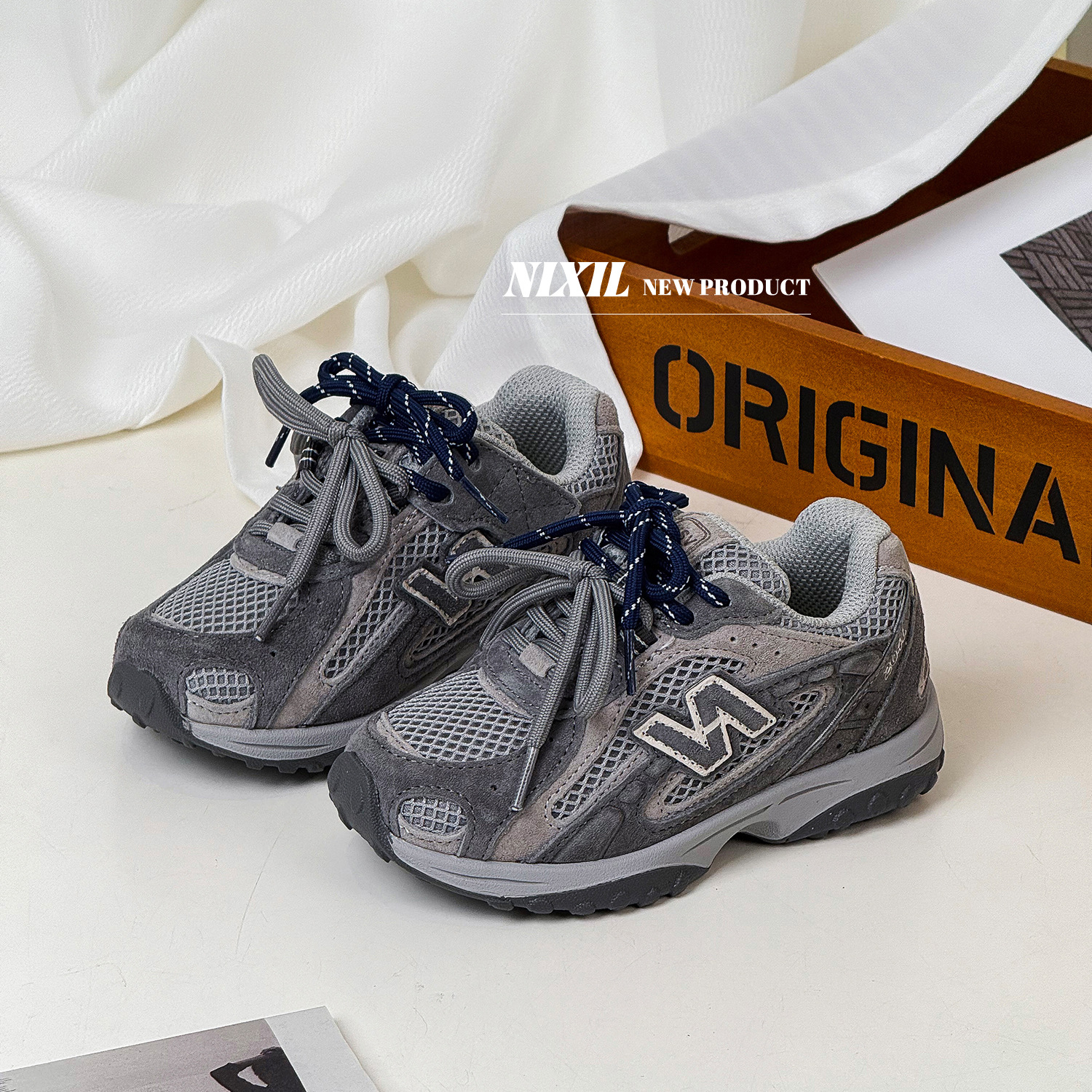 2025秋季新款儿童慢跑鞋复古N字双系带男童运动鞋女童真皮休闲鞋스토어 가기