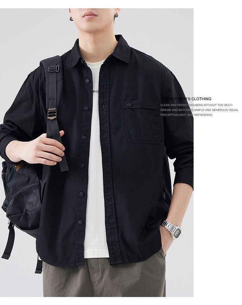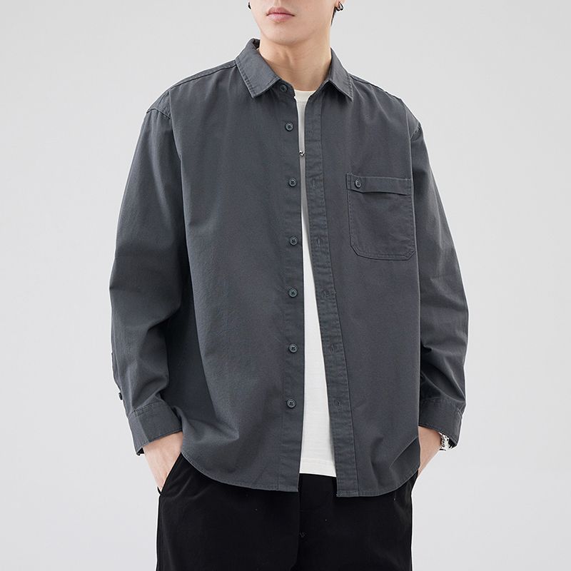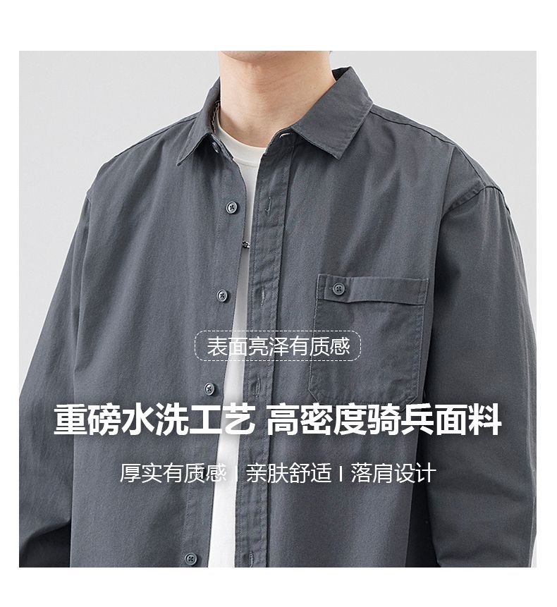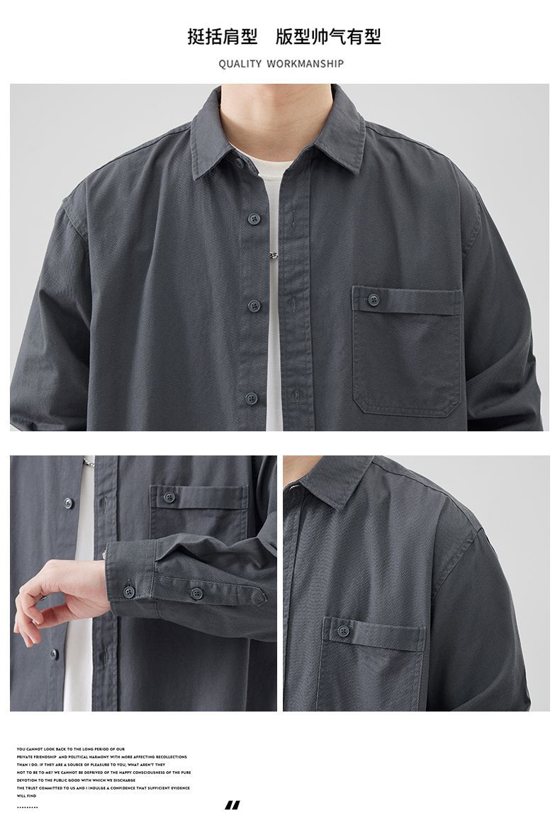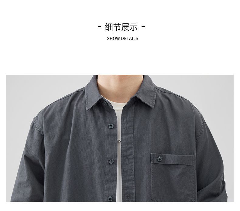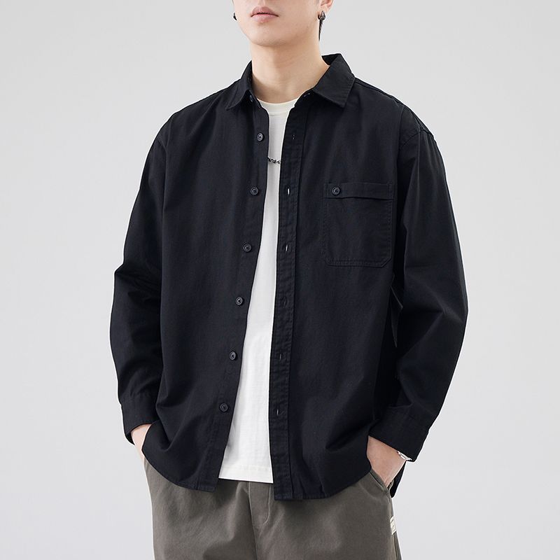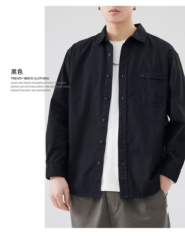 상구 남성복 가을 순면 셔츠 일본 레트로 스타일 남성 루즈핏 긴팔 캐주얼 다용도 기모 셔츠 자켓