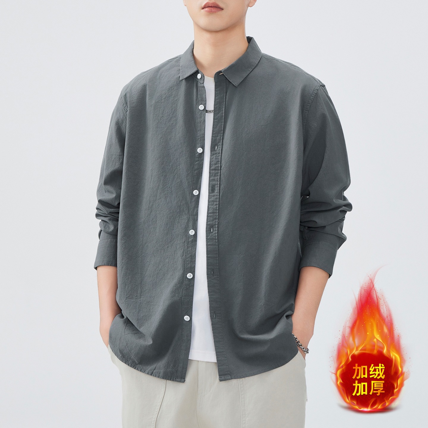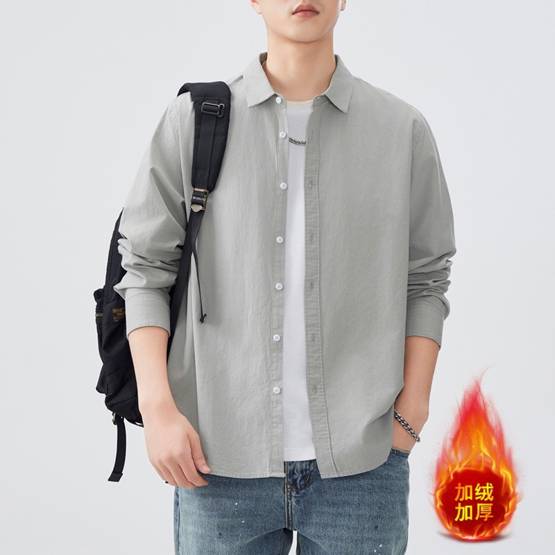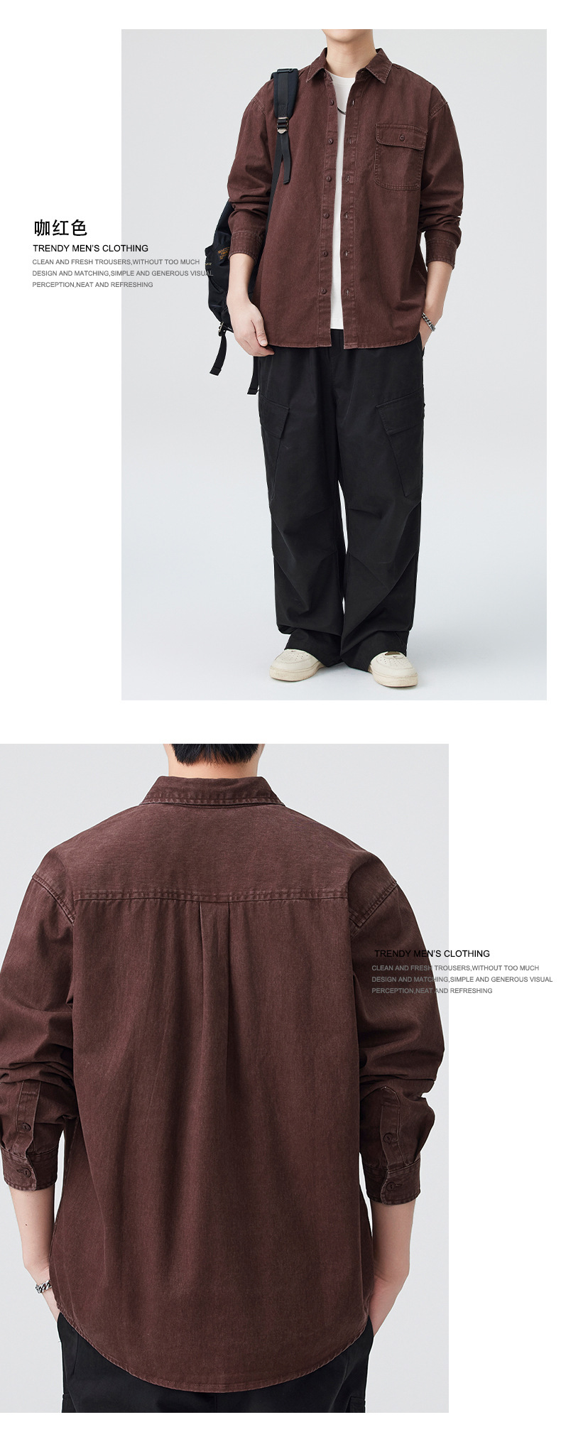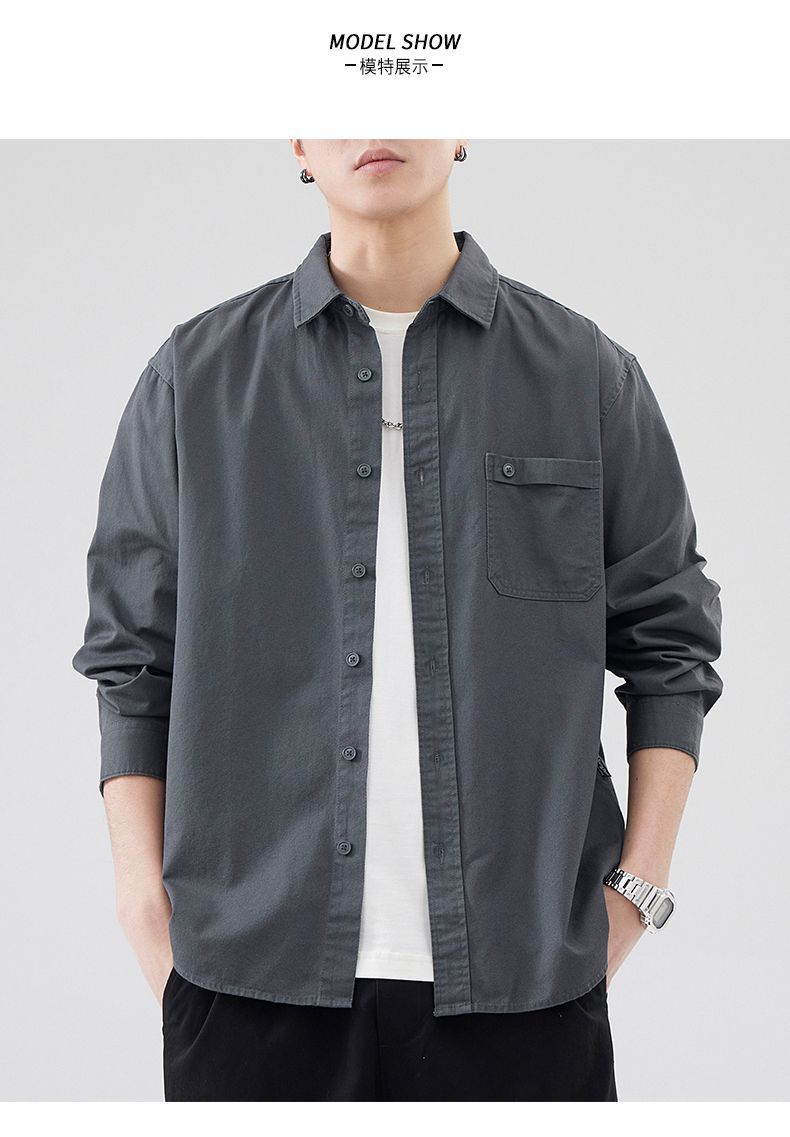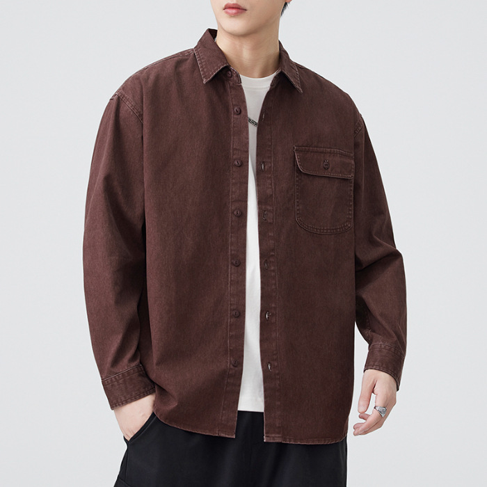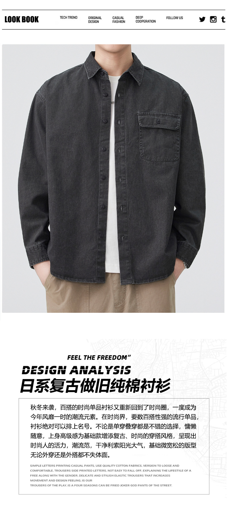 상구 남성복 가을 순면 셔츠 일본 레트로 스타일 남성 루즈핏 긴팔 캐주얼 다용도 기모 셔츠 자켓