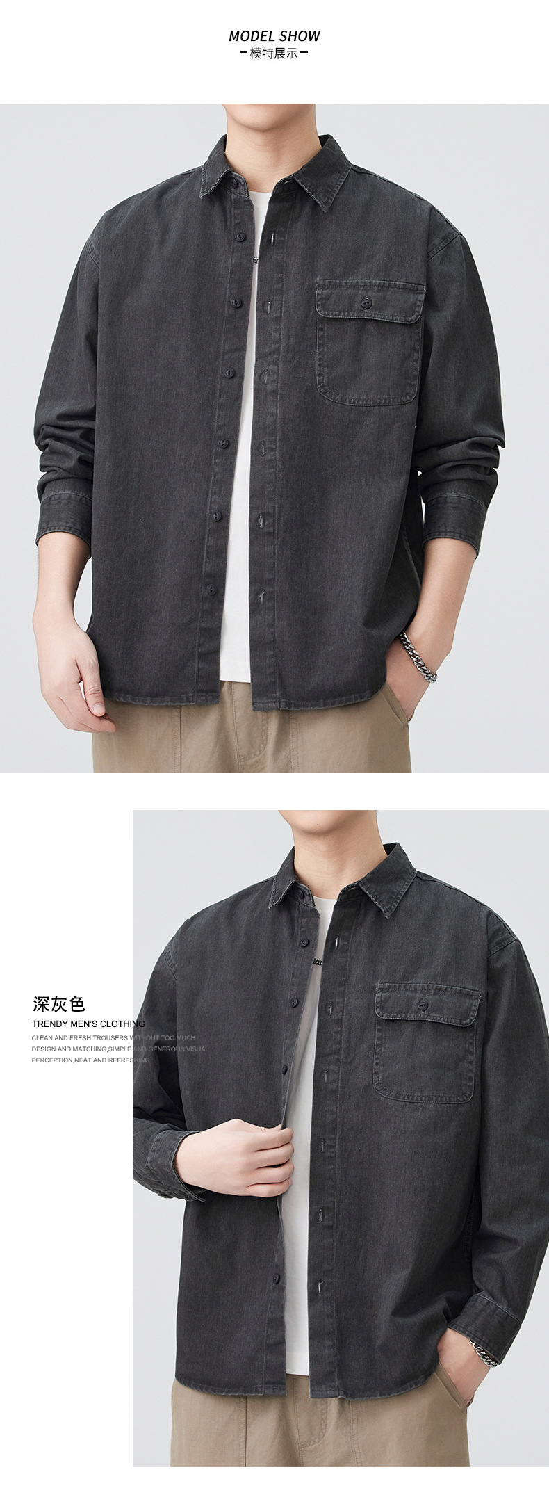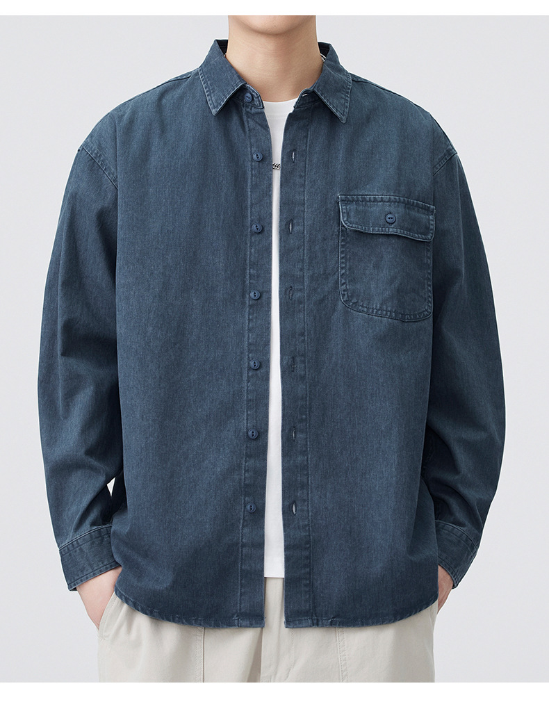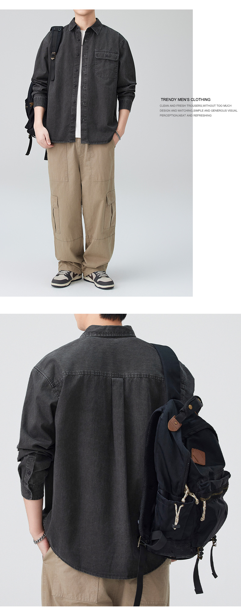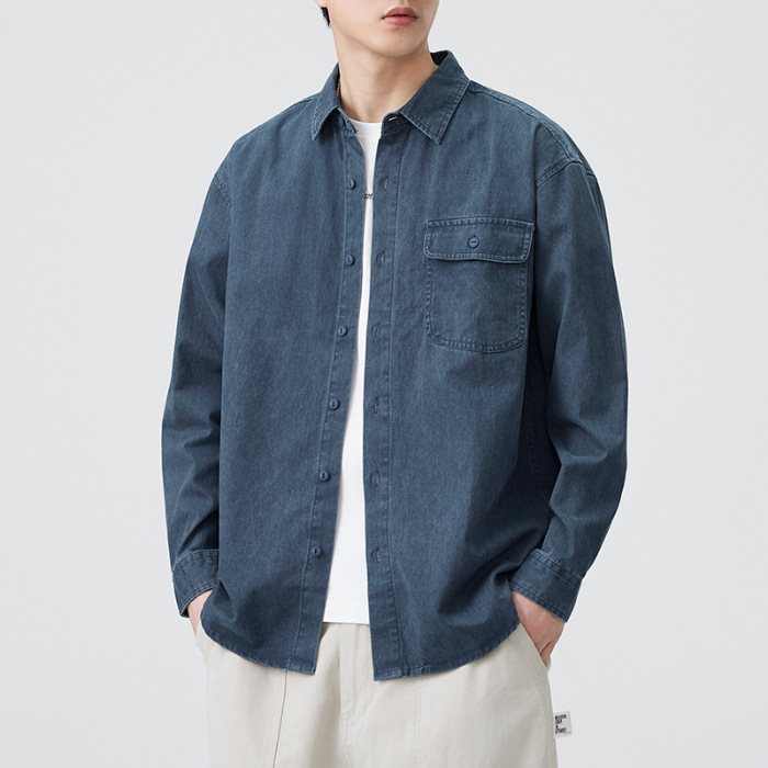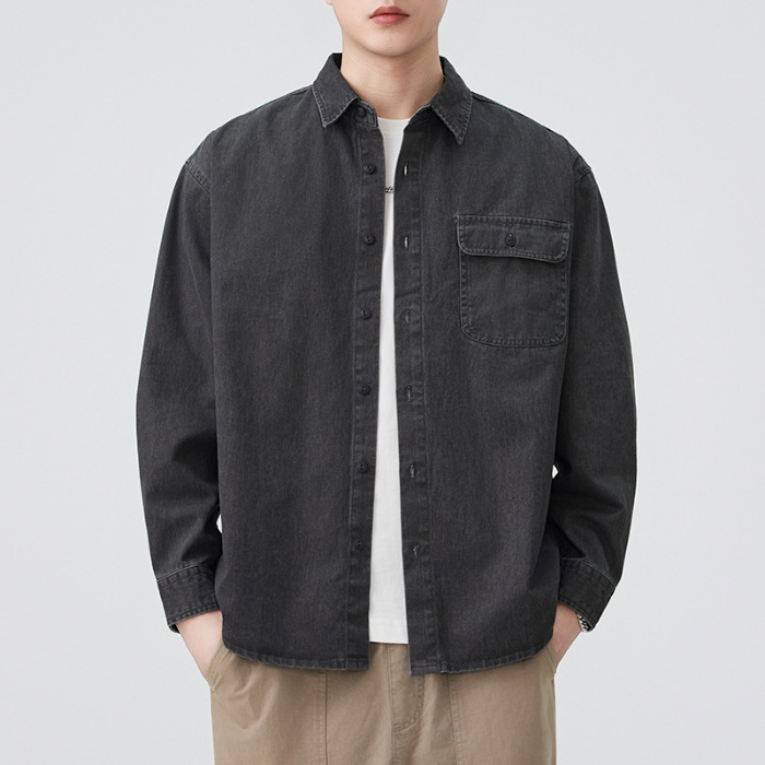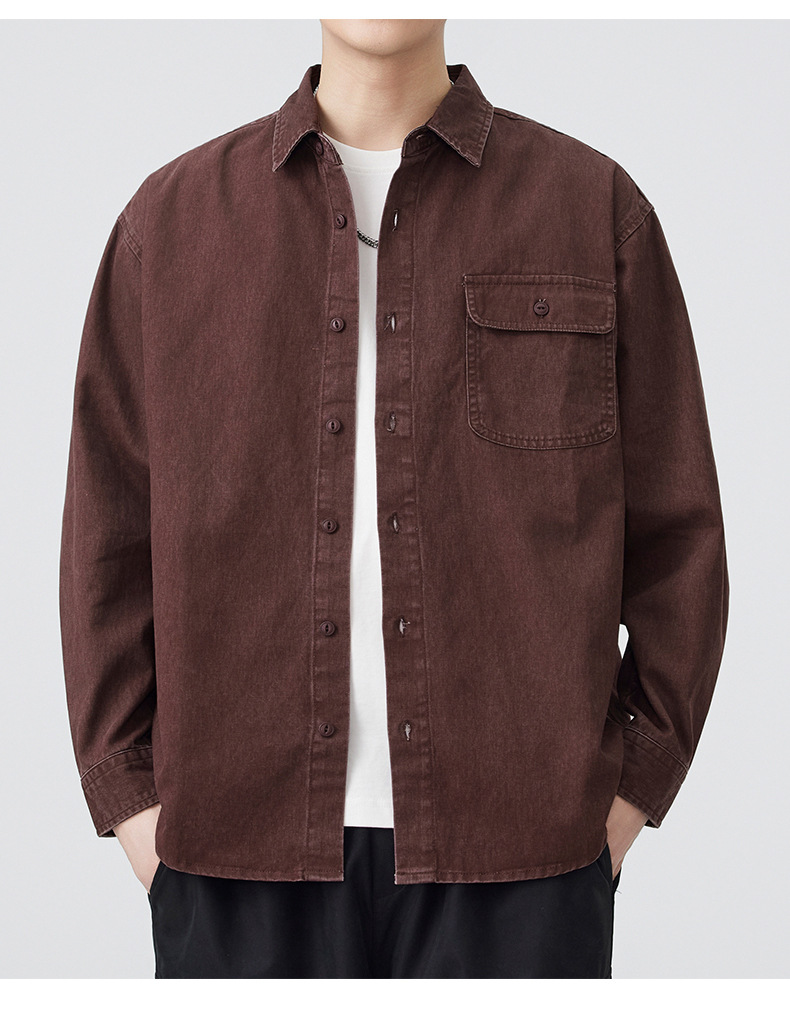 상구 남성복 가을 순면 셔츠 일본 레트로 스타일 남성 루즈핏 긴팔 캐주얼 다용도 기모 셔츠 자켓