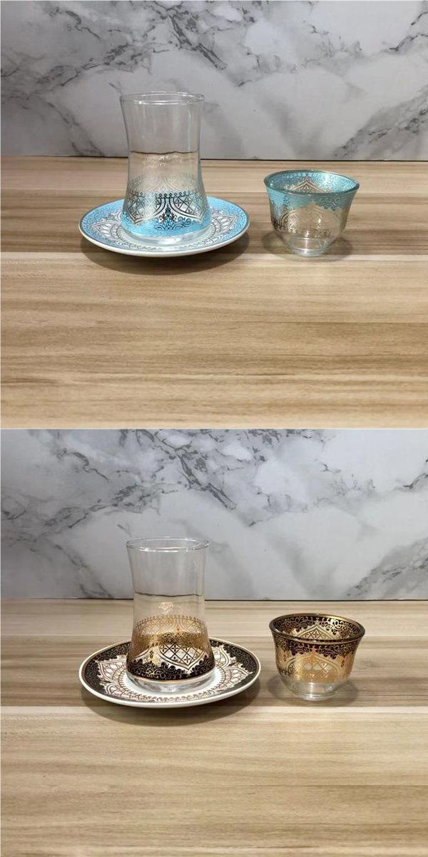 커피 컵 유럽 복고풍 터키 궁전 스타일 유리 티 컵 공주 이국적인 오후 레저 티 컵 세트