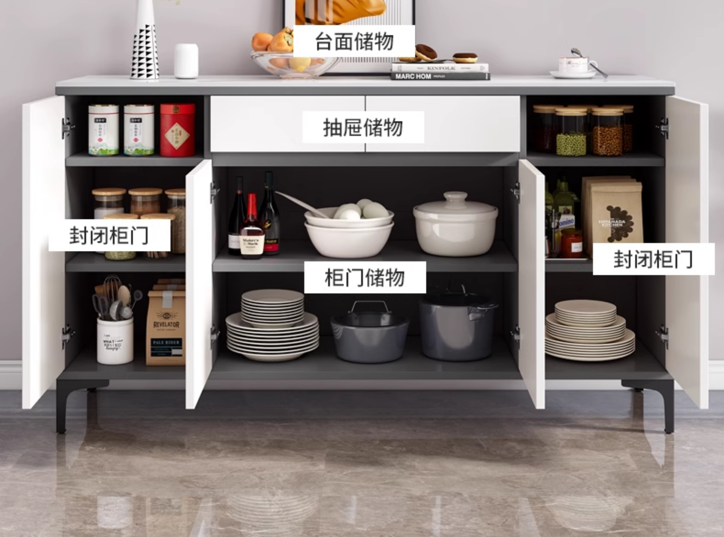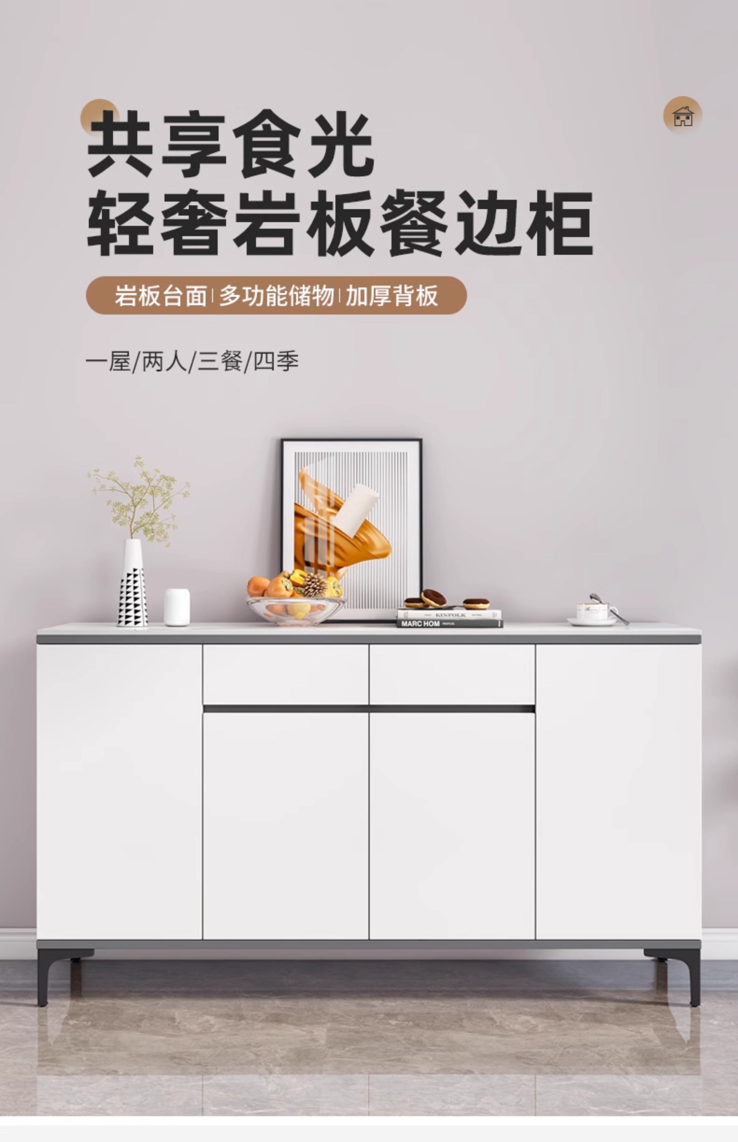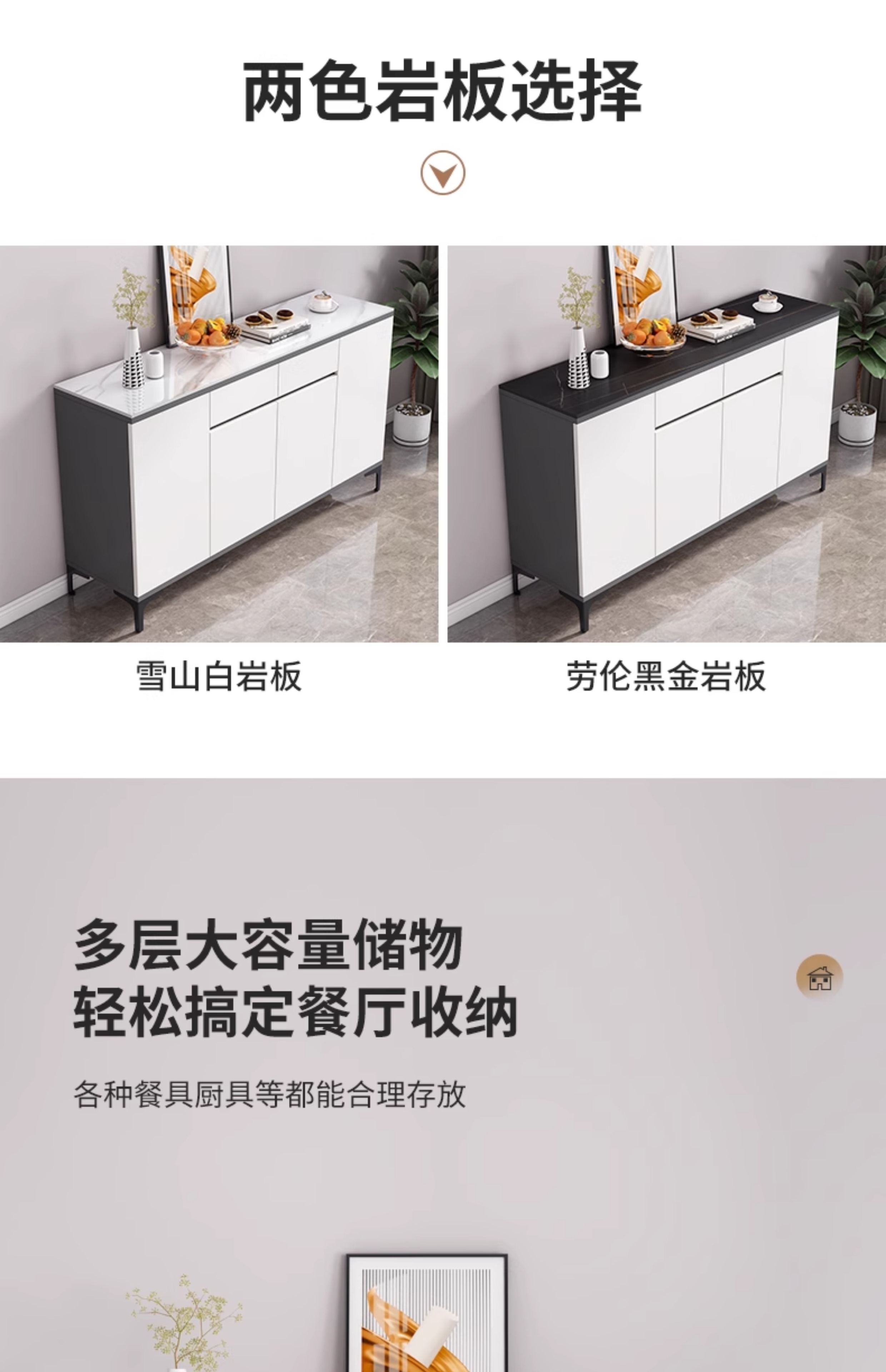 岩板餐边柜现代简约轻奢客厅靠墙一体茶水柜子厨房家用收纳储物柜스토어 가기