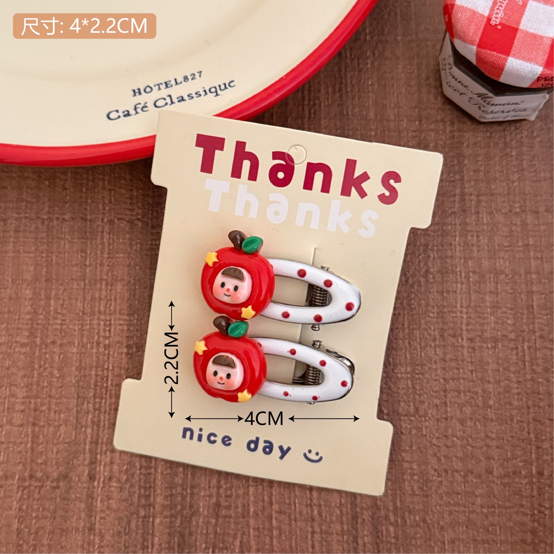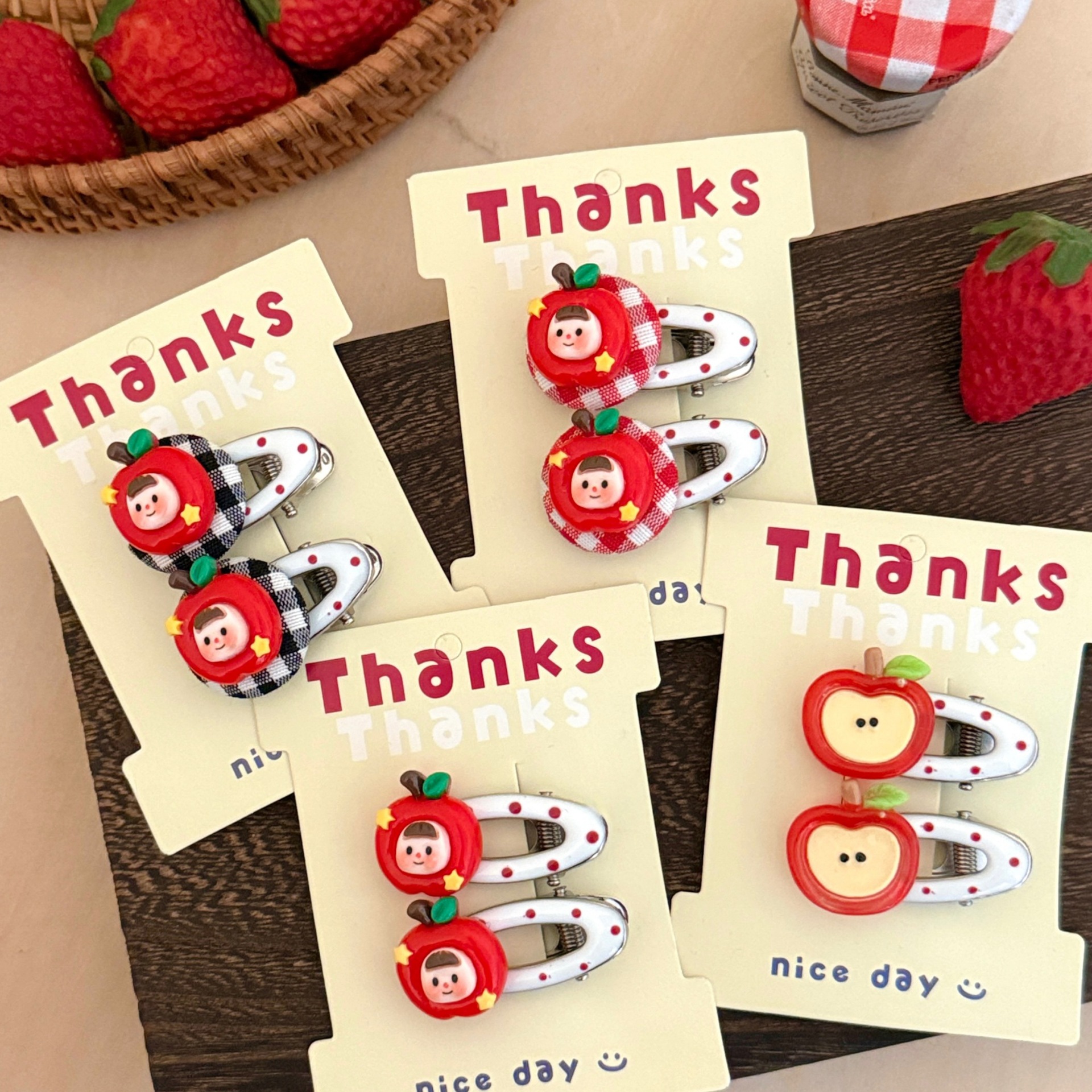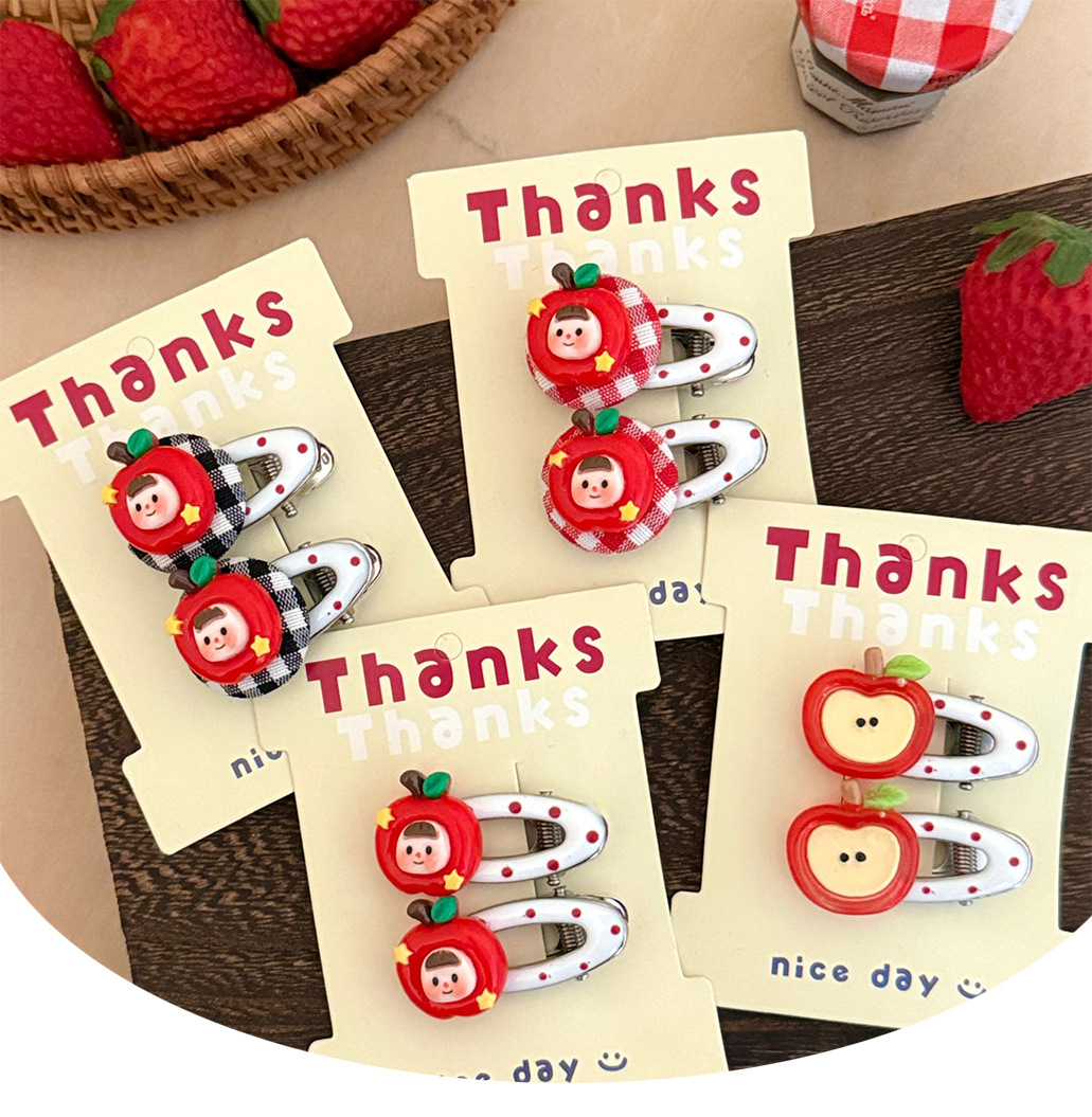 레드 애플 헤어 클립, 소녀스러운 하트, 귀여운 사이드 인 앞머리 클립, 달콤한 만화 머리핀, 헤어 액세서리 도매스토어 가기