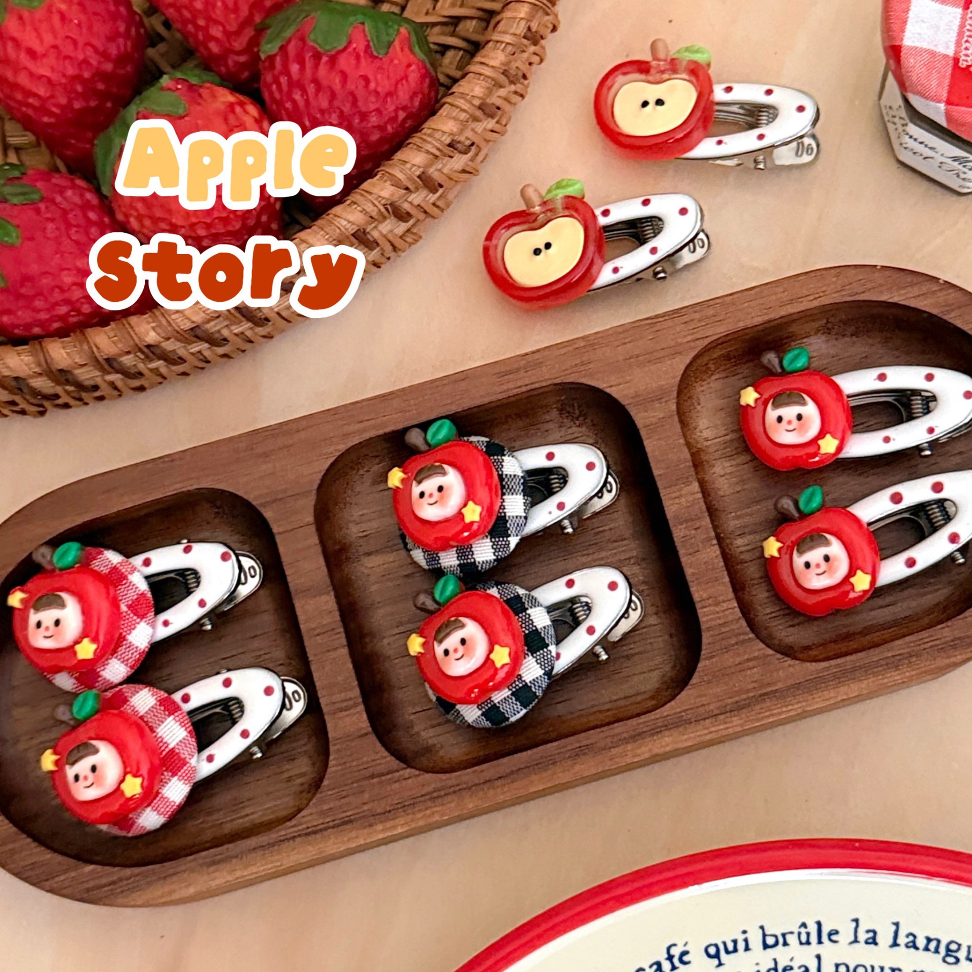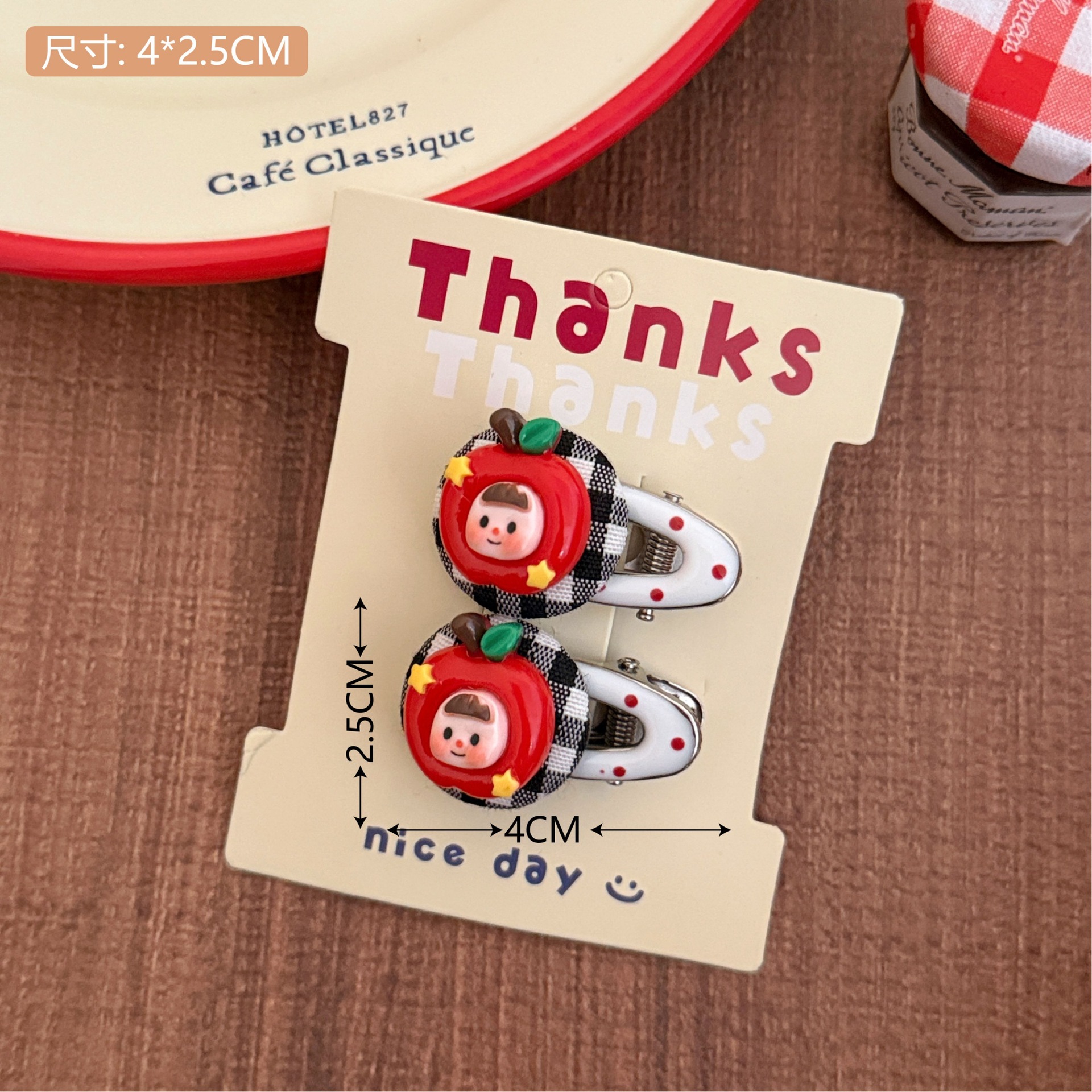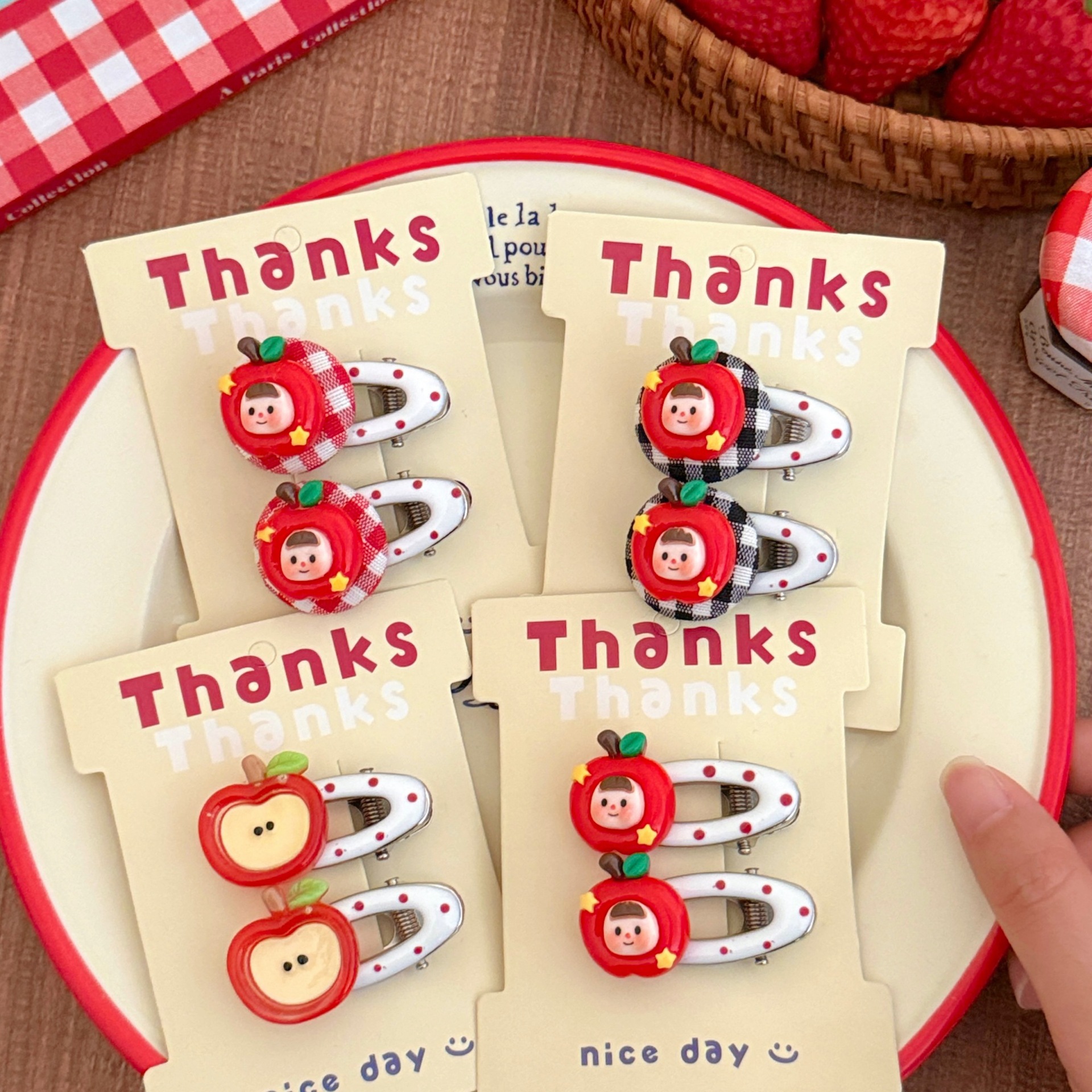 레드 애플 헤어 클립, 소녀스러운 하트, 귀여운 사이드 인 앞머리 클립, 달콤한 만화 머리핀, 헤어 액세서리 도매스토어 가기