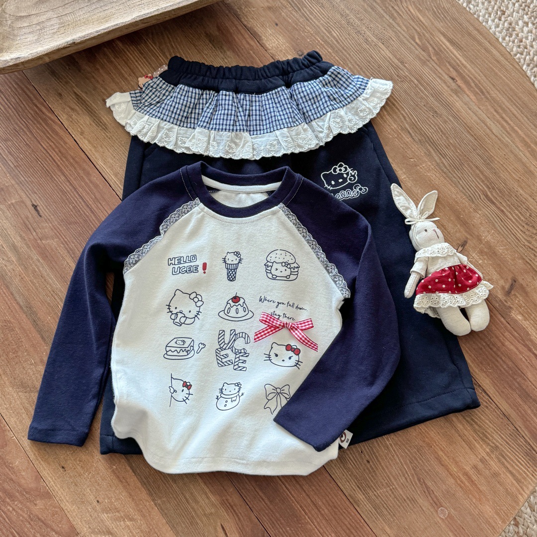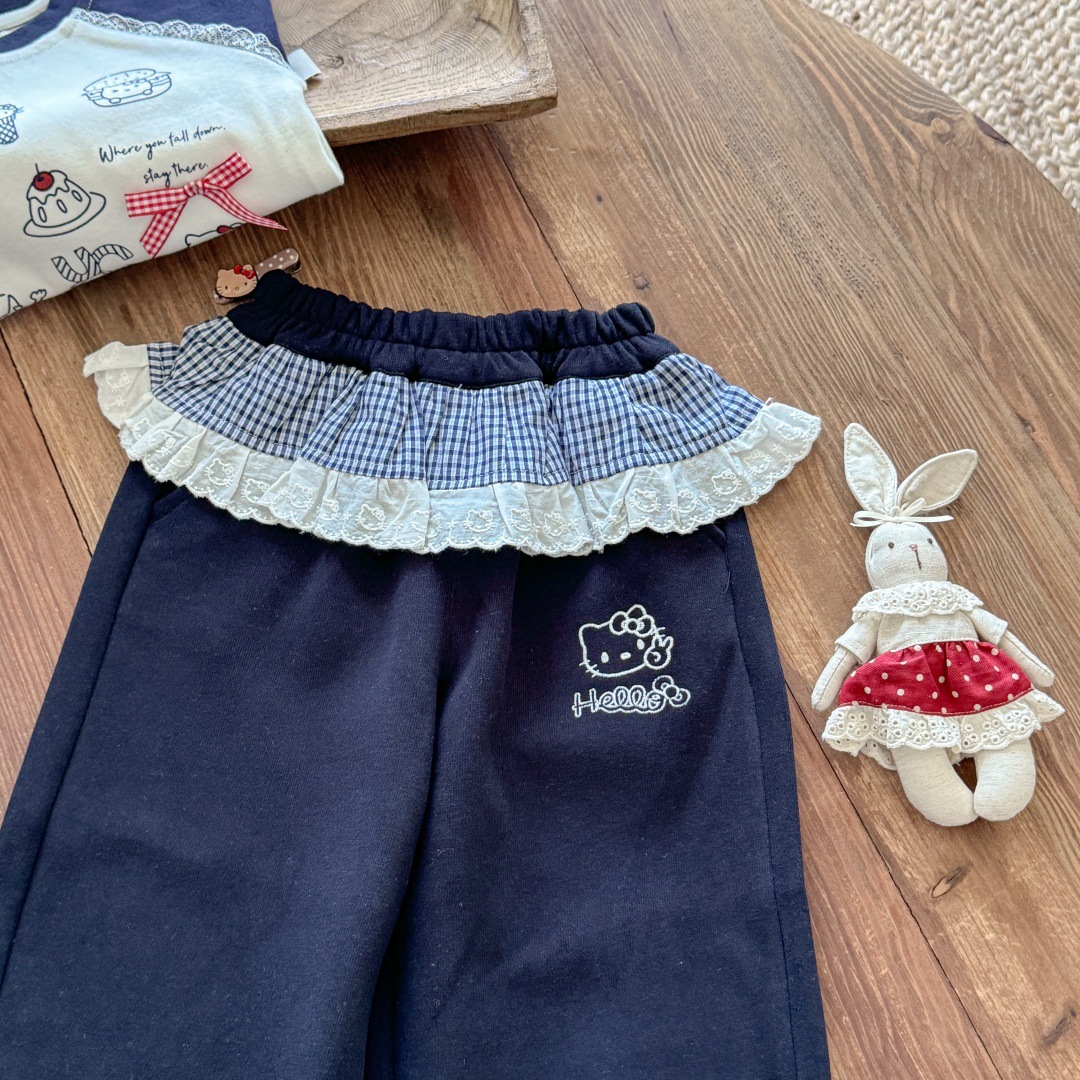 어린이 스타 라운드 소녀 한국 스타일 정장 가을 새로운 다목적 인쇄 긴팔 레이스 캐주얼 바지 아기 투피스 세트 유행